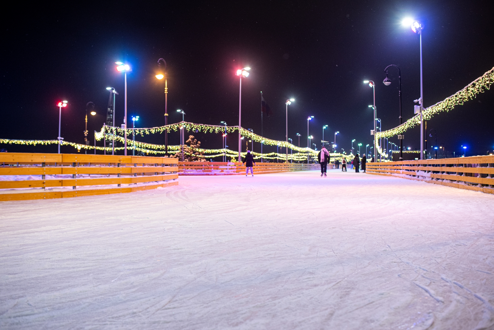 Самая большая ледовая арена — «У Флагштока» — частично заработает 22 ноября: от самого Флагштока до тоннеля с детской зоной. Вся территория, что находится правее, включая хоккейную коробку, заработает 29-го числа. Утром с 9:30 до 11:30 можно покататься бесплатно, только учтите, что в выходные билеты очень быстро разбирают. Стоимость остальных сеансов варьируется от 340 ₽ до 510 ₽.