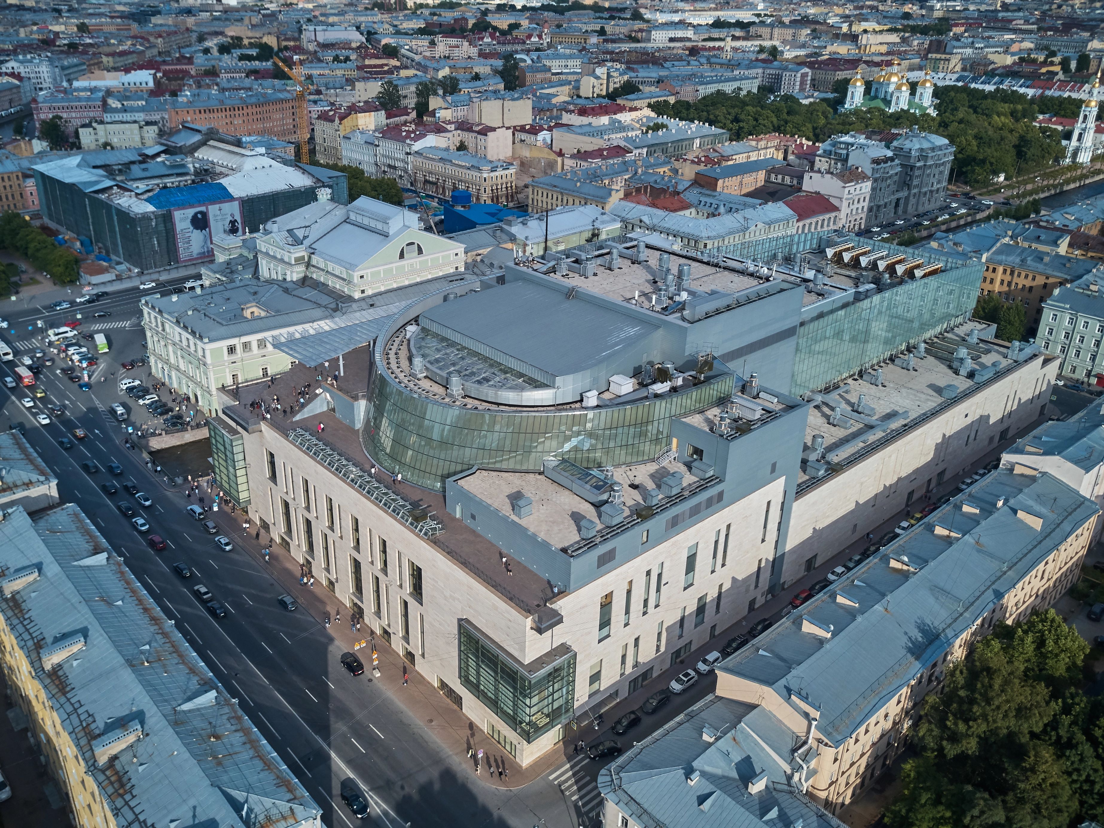 В Петербурге у театра две сцены и Концертный зал, а также несколько камерных площадок, названных в честь известных композиторов — зал и фойе Стравинского, залы Прокофьева, Щедрина, Мусоргского, Рахманинова. В общей сложности весь комплекс может принять до 4800 человек за вечер. Недавно театру передали помещение бывшего кинотеатра «Рекорд»: планируется отреставрировать его и разместить внутри ещё одну сцену, куда переедет труппа на время реконструкции основного здания на Театральной площади. Работы уже включили в проект федерального бюджета на 2026–2028 годы, однако точные даты закрытия пока не объявлены.