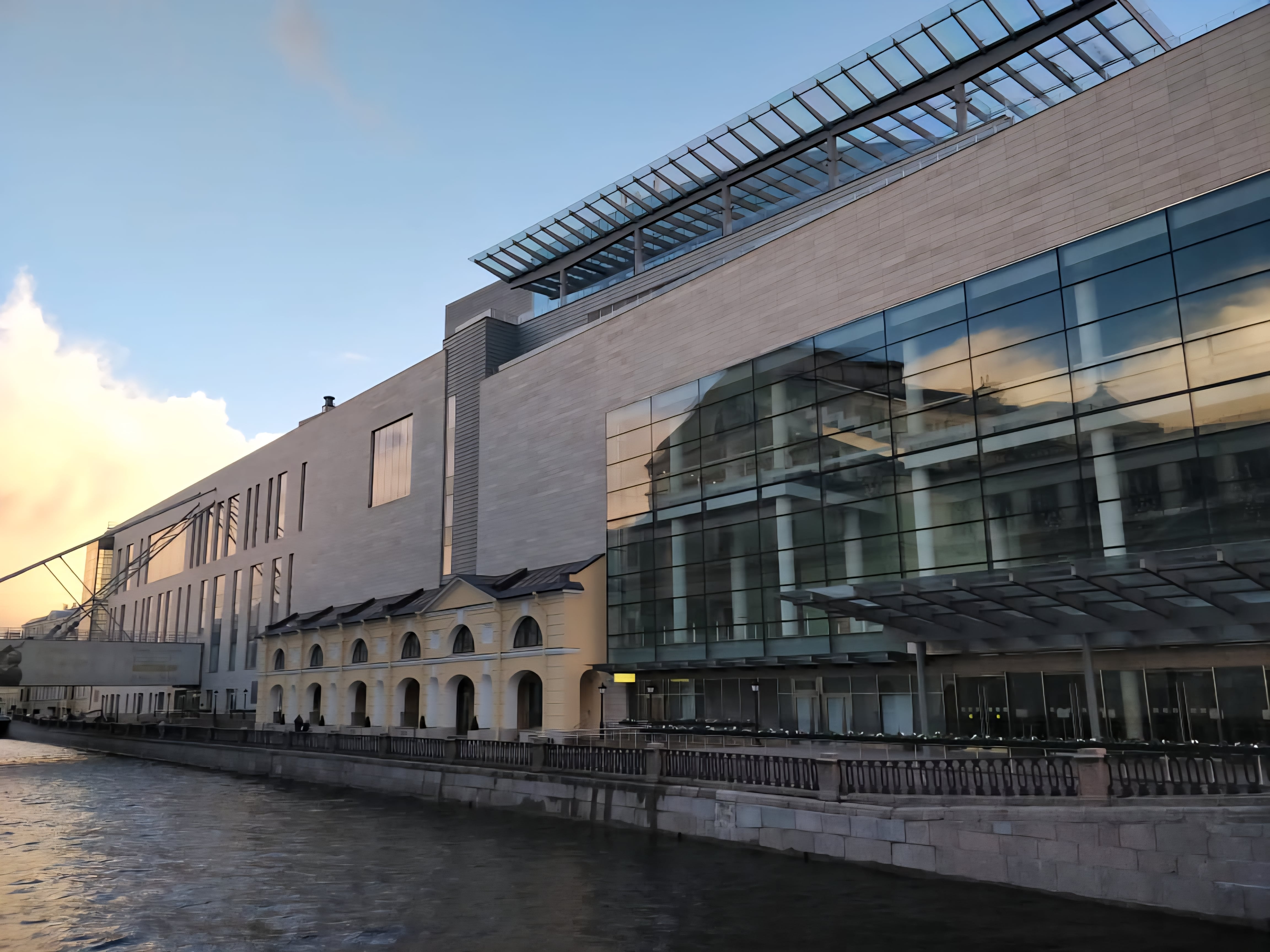 Тогда Валерий Гергиев предложил построить на месте мастерских Концертный зал, сохранив уцелевшие в огне кирпичные стены исторического здания. С противоположной стороны, которая выходит на улицу Декабристов, возвели новый фасад. По задумке архитектора Ксавье Фабра он символизирует связь «века нынешнего и века минувшего».