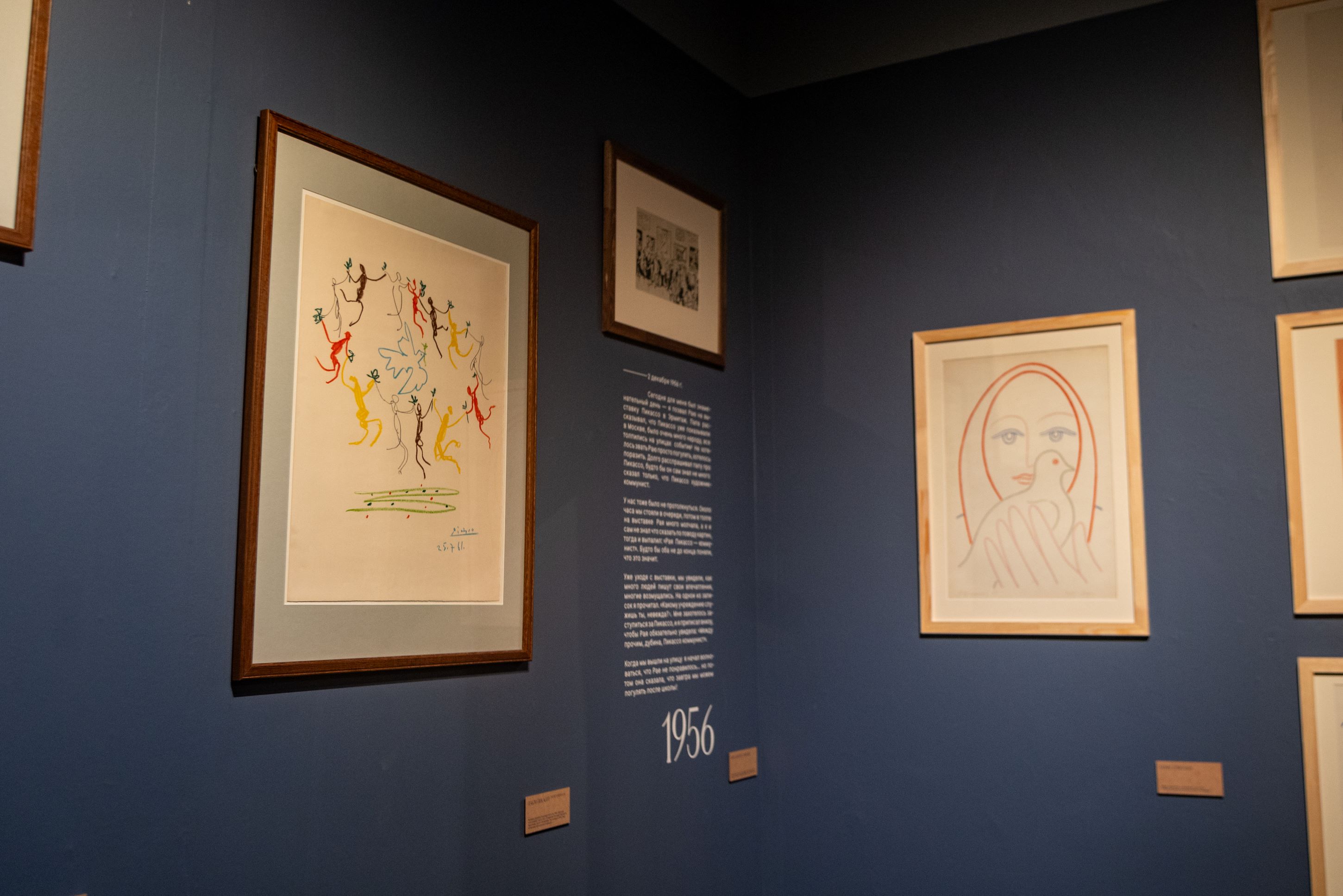 Среди произведений Пикассо галерея показывает знаменитую «Голубку». Рядом кураторы поместили небольшую графическую работу, созданную по мотивам эпохальной выставки. Художник запечатлел, как публика отчаянно спорит о творчестве мастера. Дополняют раздел произведения Бориса Ермолаева, Вадима Сидура, Эрнста Неизвестного, Михаила Натаревича и Георгия Израилевича — наглядные иллюстрации того, как выставка Пикассо изменила художественный метод советских творцов.