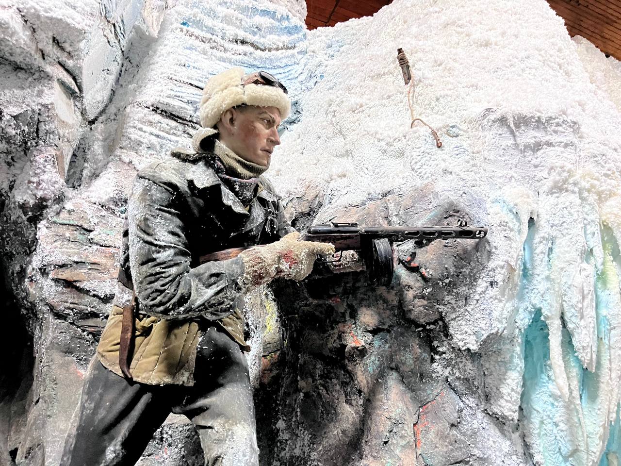 Другие примеры мужества проявлялись в высокогорьях Кавказа. Тогда разведотряд бойцов-альпинистов под руководством Михаила Боброва отправился на Эльбрус. Во время перехода через Местийский перевал в Балкарию советские разведчики встретили немецких егерей. Завязался бой, из которого наша сторона вышла без потерь. Это реальная история ветерана Боброва, чьи рассказы вдохновили создателей выставки.