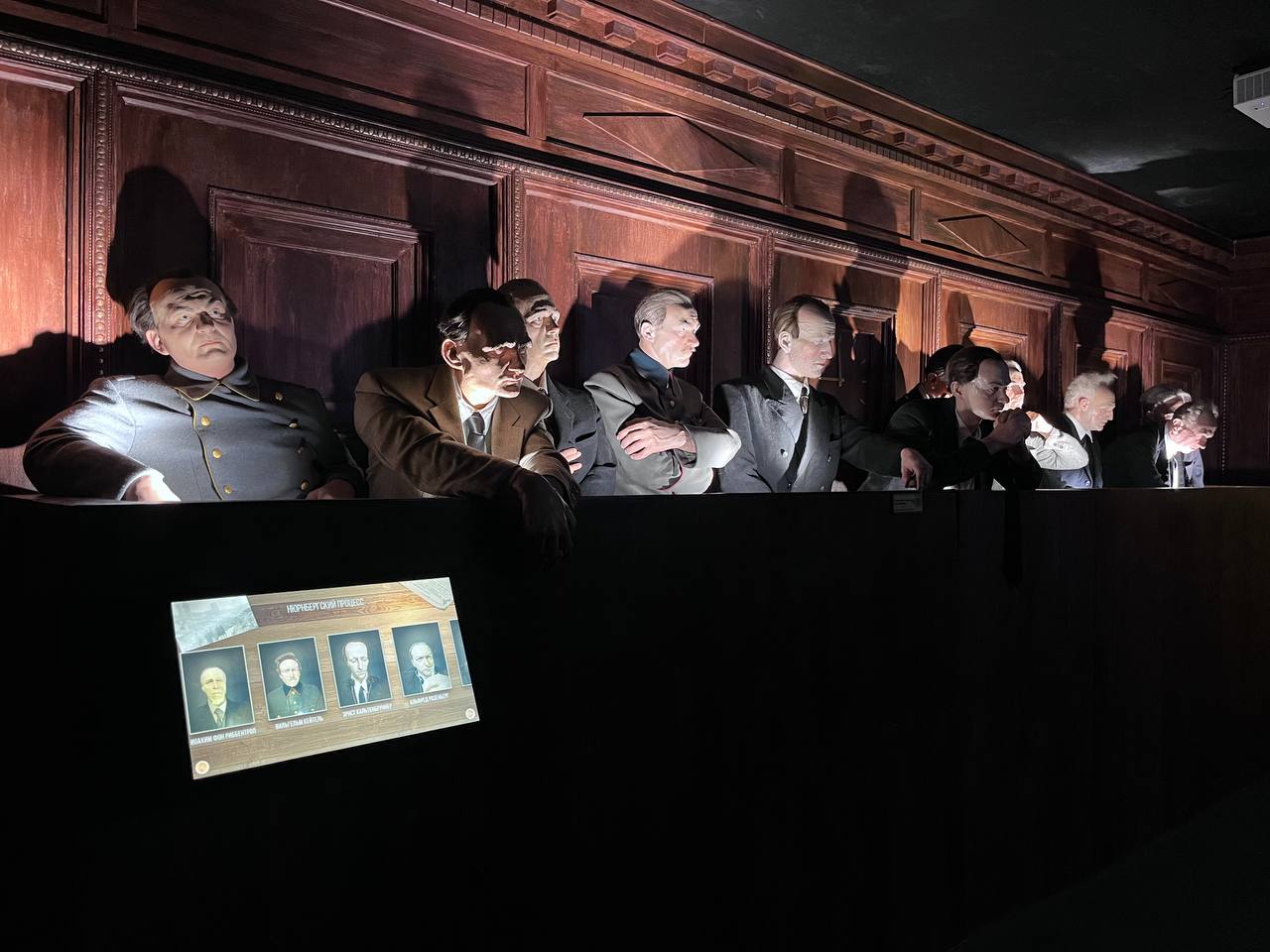 Через торжественные своды Рейхстага мы оказываемся в кровавом коридоре, ведущем в зал Дворца юстиций в Нюрнберге. Леденящую тишину прерывает рассказчик, заводящий повествование о крупнейшем военном суде. На первом ряду скамьи подсудимых — главные нацистские преступники: Геринг, Гесс, Риббентроп, Кейтель и другие. Портретное сходство и нахальство каждого — налицо.