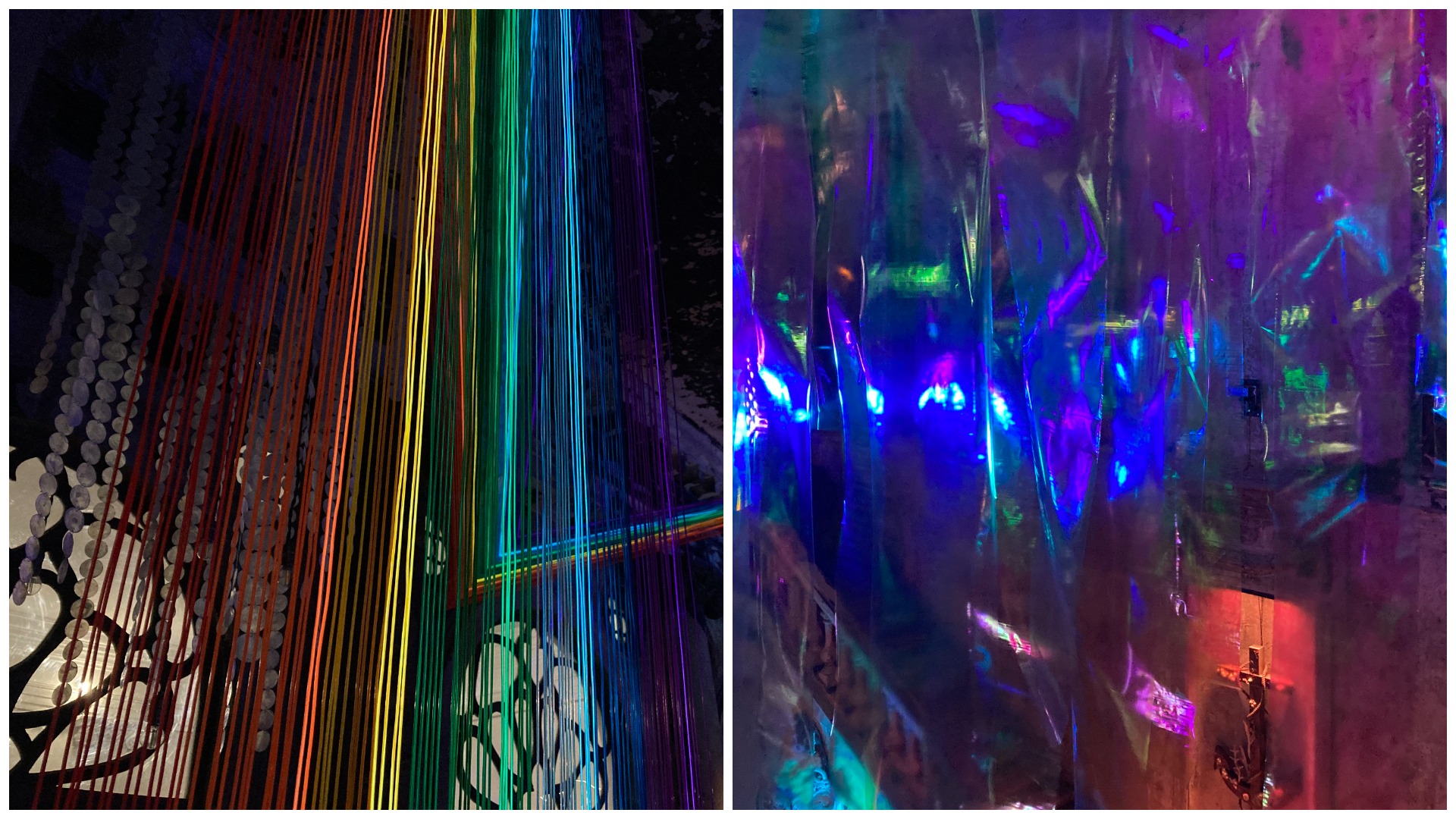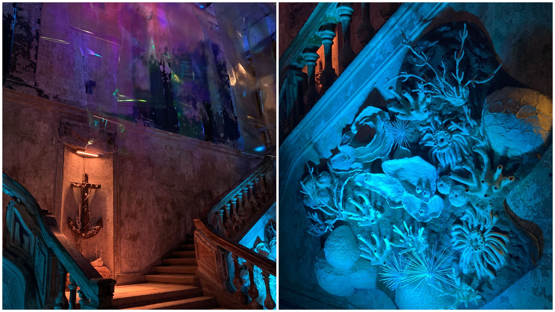 На главной лестнице вас встречает образ потопа, а точнее хаоса, который поначалу не так просто распознать. Раскрыть этот замысел помогают инсталляции с ракушками и крест, стилизованный под старый якорь. А вот свисающие с потолка прозрачные ленты снизу выглядят несуразно. Но стоит подняться по лестнице и посмотреть на них из кофейни, восприятие меняется. Теперь они становятся то ли сверкающими струями водопада, падающими с высоты, то ли волнами, уносящими ковчег вдаль.