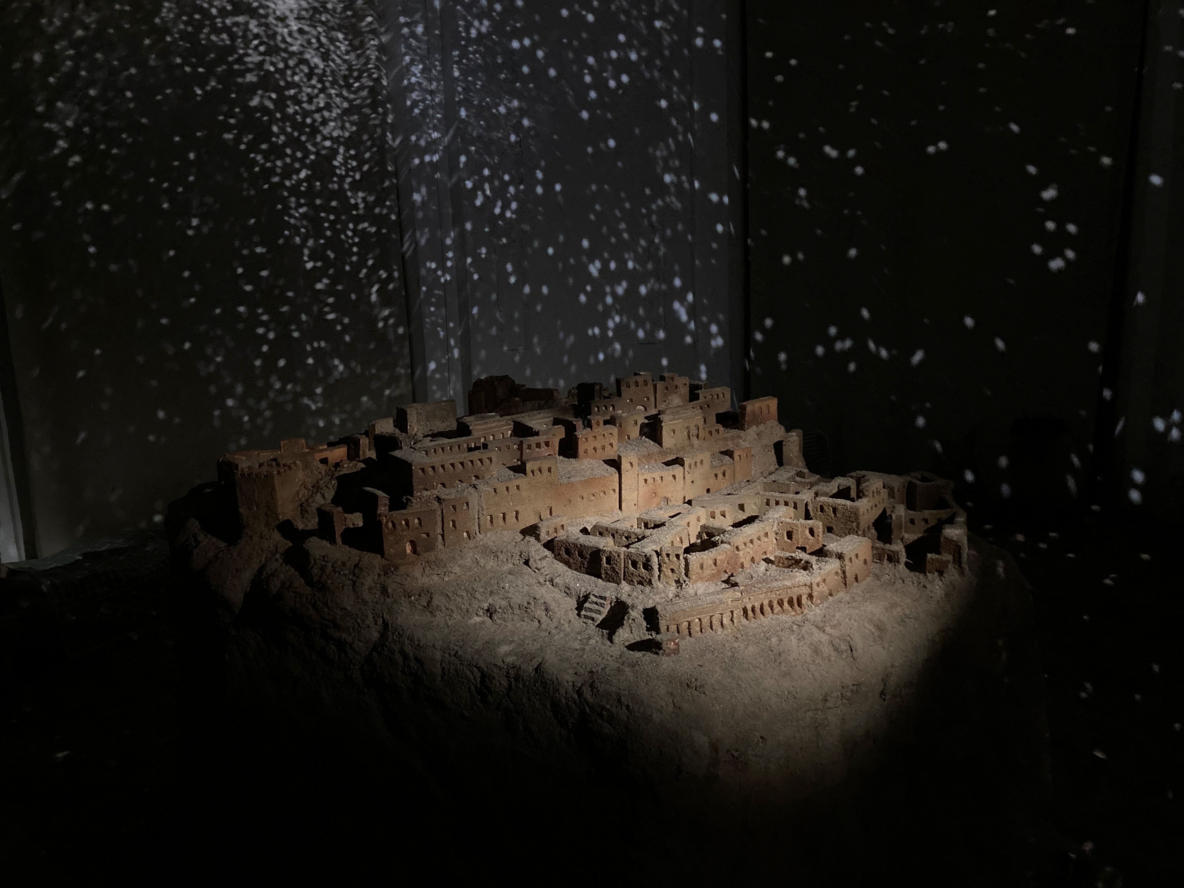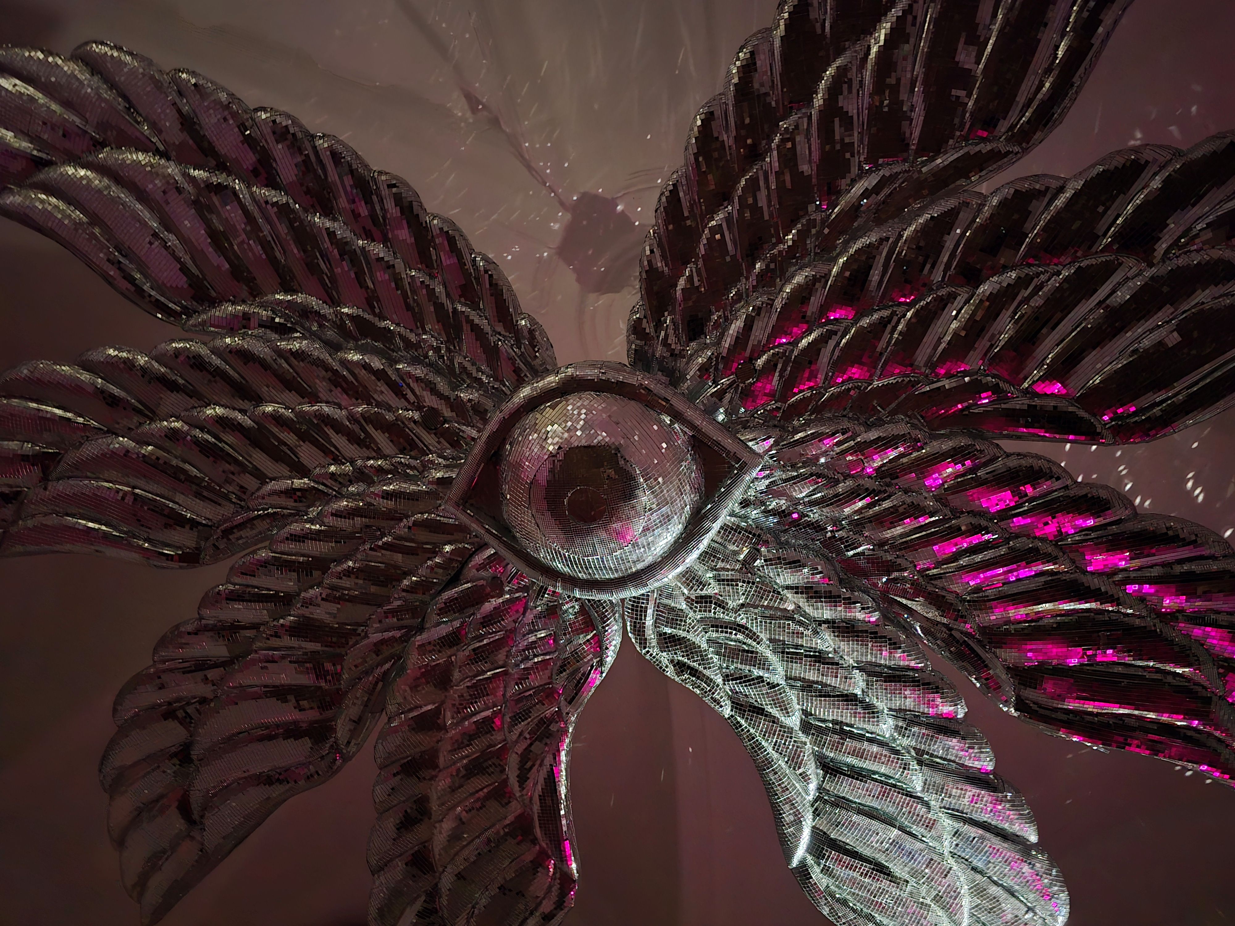 Тем временем, в ротонде до сих пор царит дух Рождества. Правда, здесь вы не найдёте ёлок, свечей и Вифлеемской звезды. Зато есть головокружительный ангел, напоминающий диско-шар. А под ним, в песке дремлет миниатюрный Назарет — город, где жили Иосиф и Мария. Сюда же перебежали очаровательные пуфики-овечки с прошлой выставки. Кураторы отмечают, что экспонаты настолько запали посетителям в души, что многие предлагали их даже купить.