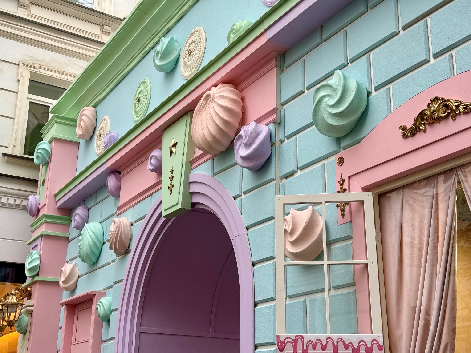 На входе в ресторан «Хорошая девочка» на Малой Бронной, 10с1, сделали нежное оформление из зефира пастельных оттенков. Кажется почти настоящим!