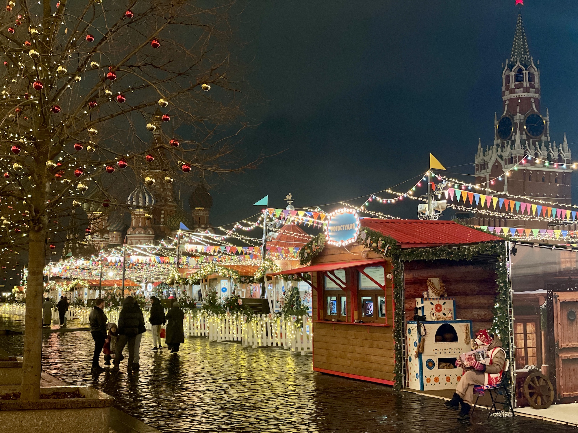 На фестивальной площадке неподалёку от Кремля подготовили традиционную локацию проекта «Путешествие в Рождество». Здесь уже появилась венецианская карусель и украшенные киоски-терема с едой и напитками.