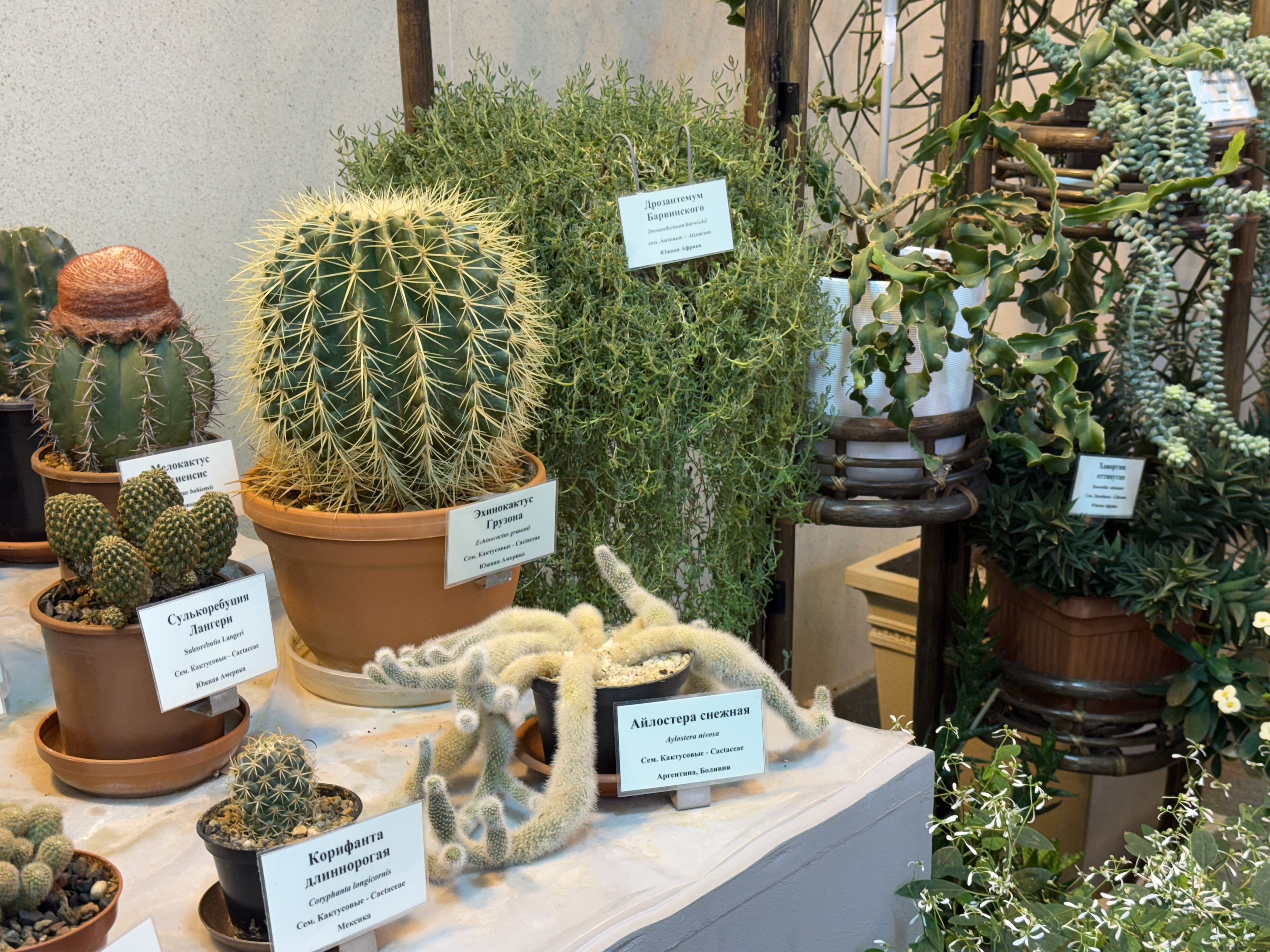 Сегодня там можно увидеть более 300 видов и сортов растений, в том числе редкие краснокнижные экземпляры. На тропическом маршруте гостей ждут папоротники, бромелии и орхидеи, на субтропическом — цитрусовые, лавр и олеандр. Отдельного внимания заслуживает коллекция кактусов и суккулентов: здесь представлены агавы, эхеверии, опунции и многие другие.