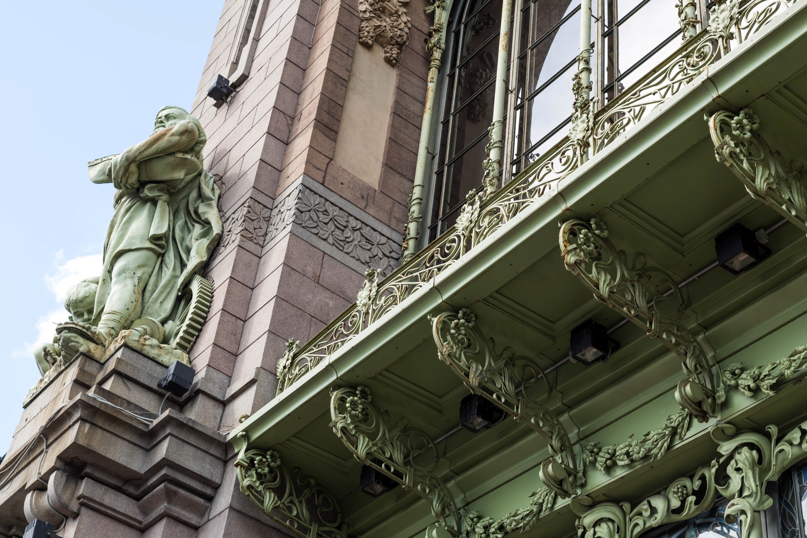 Следующая остановка — Дом компании Зингер. Удивительное здание работы архитектора Павла Сюзора в стиле модерн, построенное для производителя швейных машин «Зингер». Здесь была штаб-квартира компании.