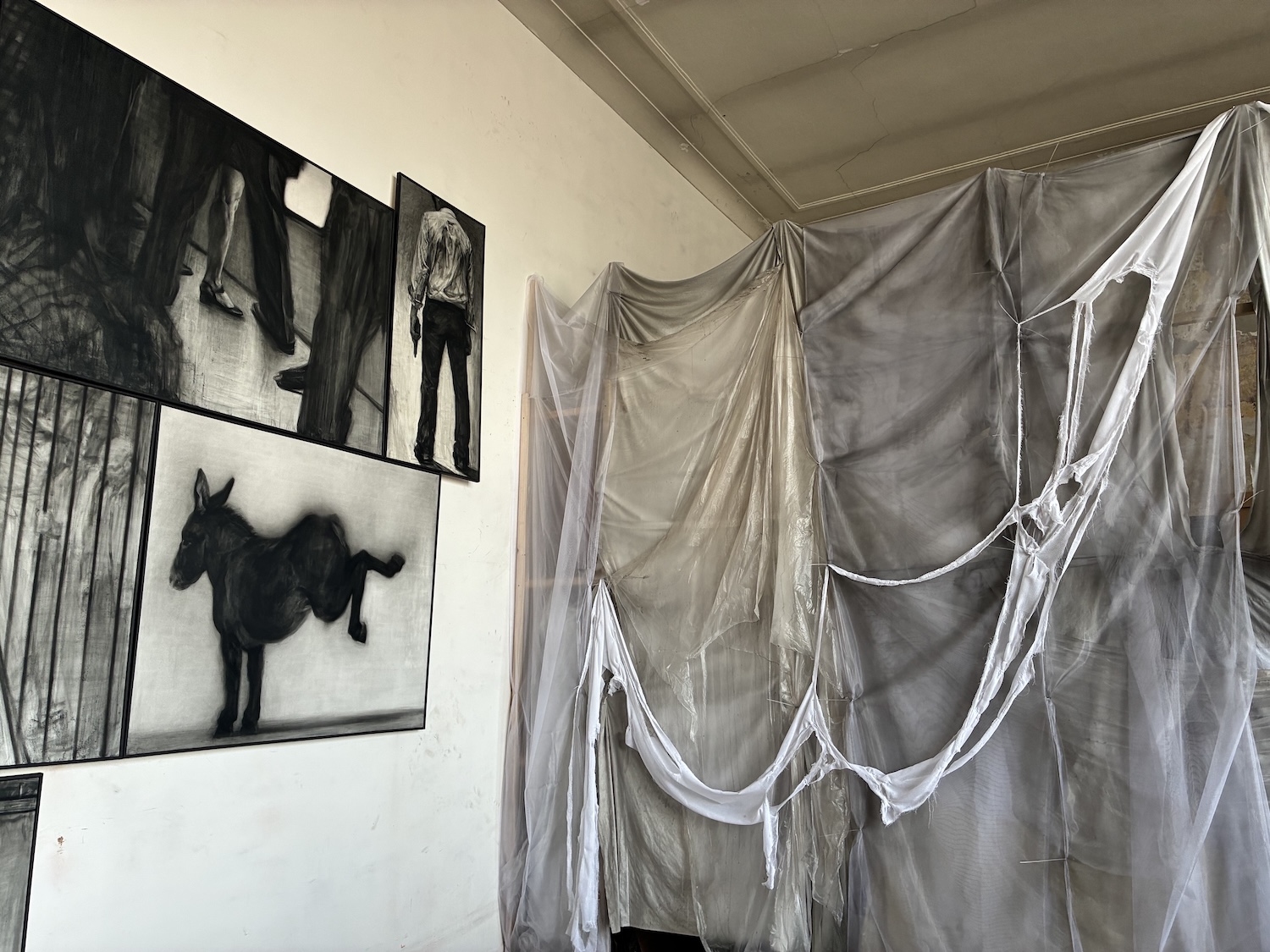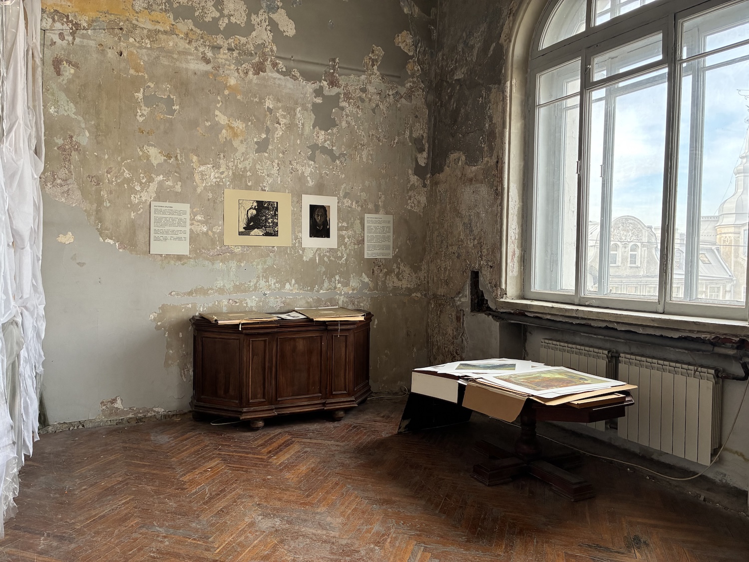 Кроме инсталляций, в пространстве можно увидеть крупноформатные произведения по мотивам книг Камю и Шаламова, а также рассмотреть небольшие офорты.