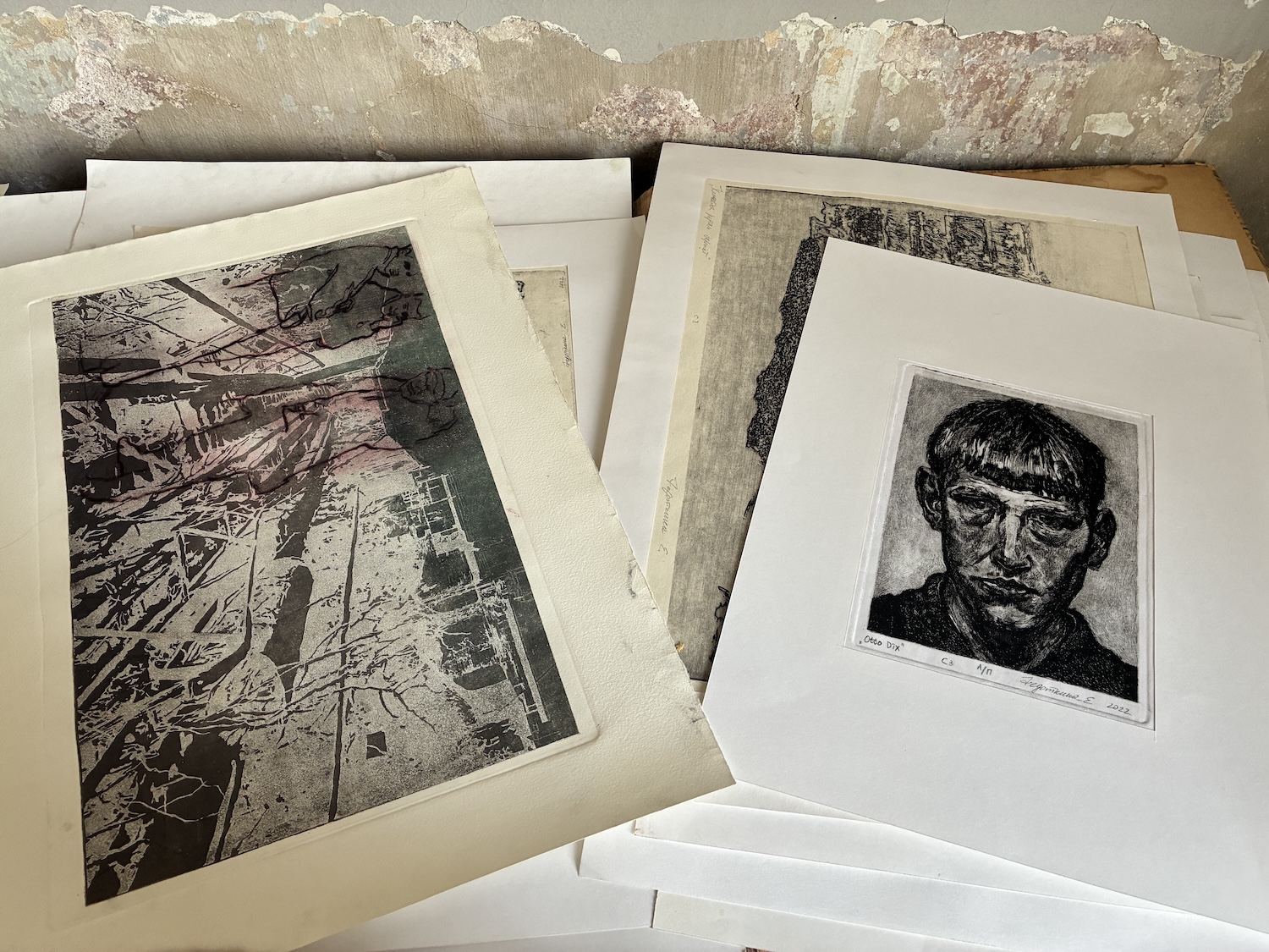Интересно, что большинство графических произведений, среди которых пейзажи с природой, интерьеры зданий, копия с живописного автопортрета Рембрандта и не только, лежат в папках, откуда их можно доставать, разглядывать и перелистывать. Это медитативное занятие усиливает впечатление от мастерской — нет ощущения «музейности», наоборот, вы будто действительно пришли в гости к художнику и можете напрямую прочувствовать искусство, без рамок и дистанции.