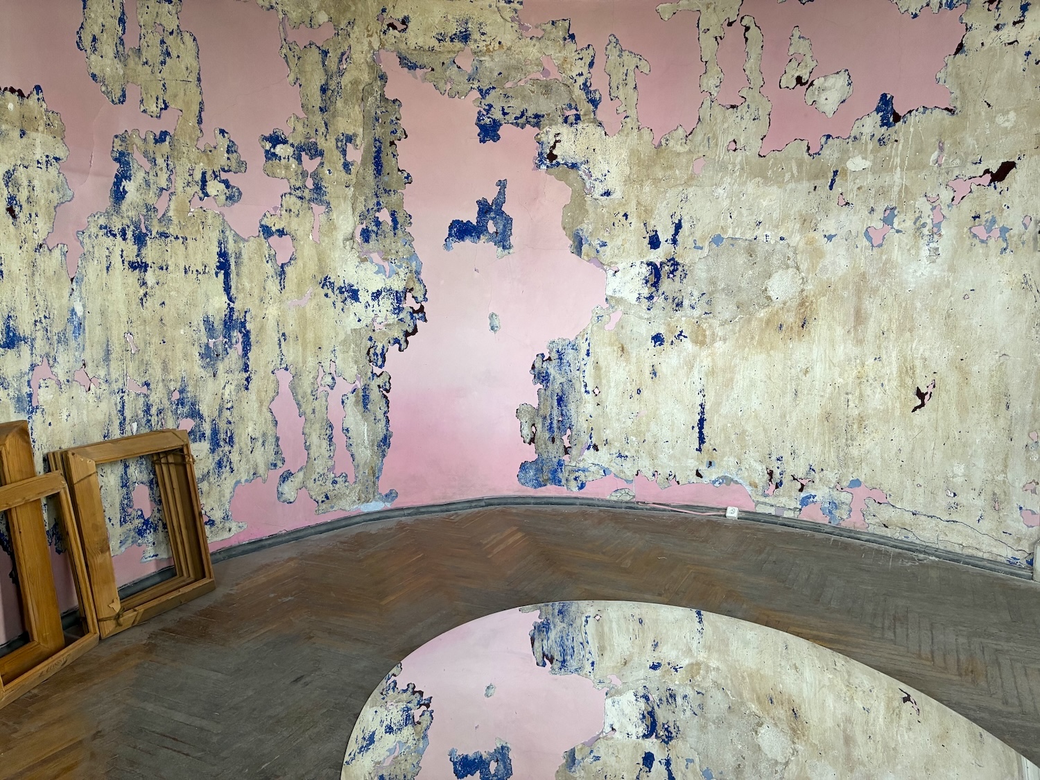 Вместе с этим двумя опорными точками становятся инсталляции, вдохновлённые архитектурой бывшей мастерской. В первой комнате зрителя встречает композиция «Леса», которая использует образ «паутин» — строительных материалов, затягивающих старые дома во время реконструкции. Можно заглянуть внутрь живописной груды, разглядеть коробки, деревянные конструкции и не только.