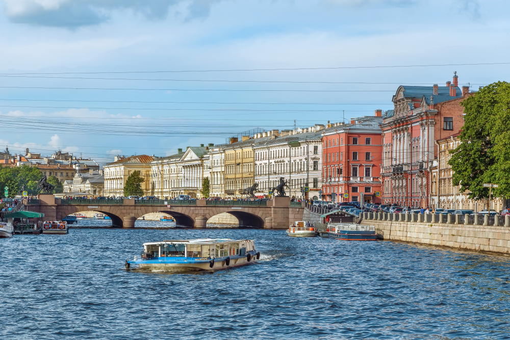 Во время променада обратите внимание, как много красивых мостов проложены на Фонтанке — Аничков со знаменитыми конями Клодта, мост Ломоносова с массивными башнями-павильонами, Египетский мост со сфинксами.
