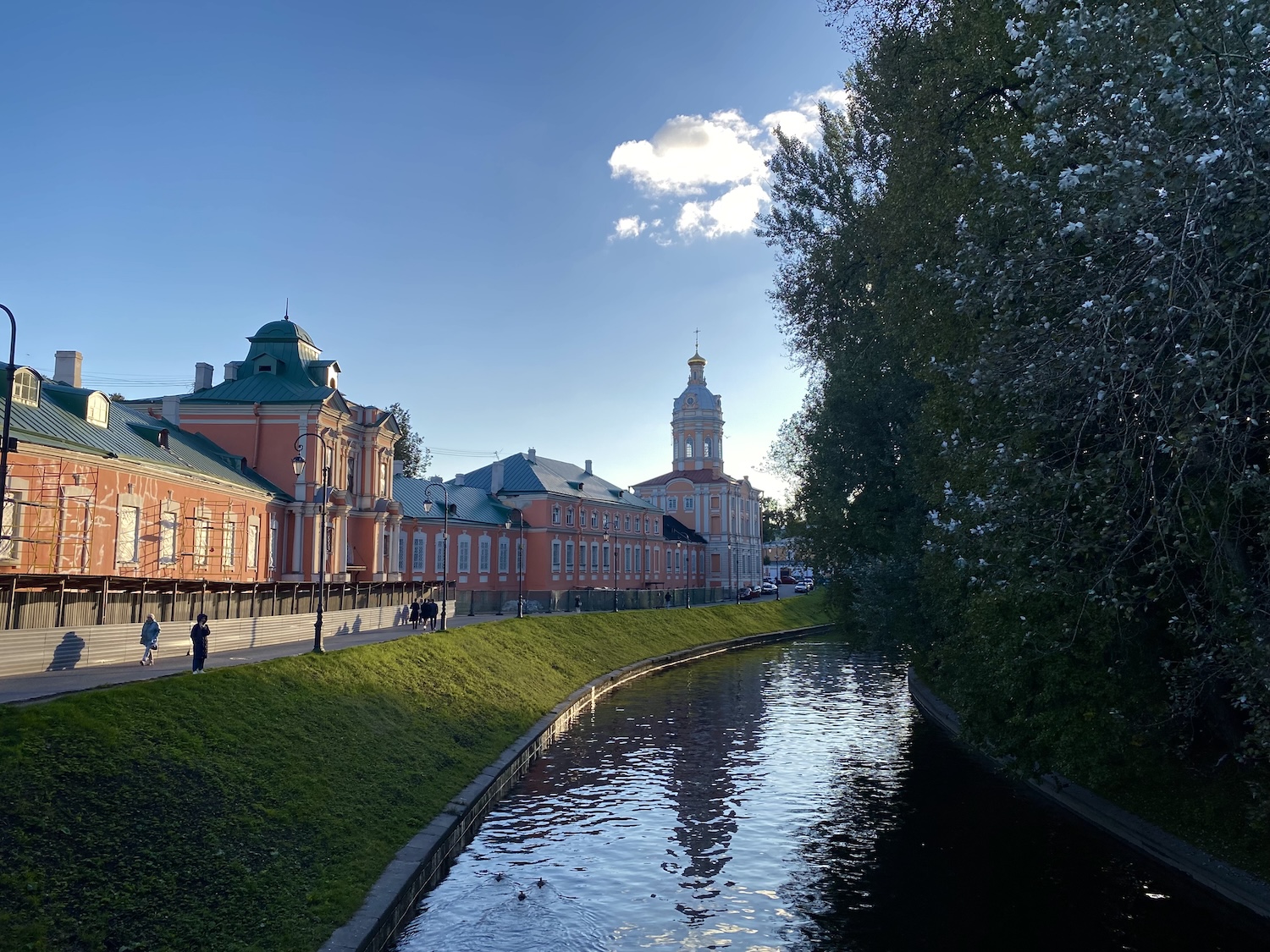 Монастырка отделяет корпуса обители от кладбищ и Некрополя мастеров искусств. Если остановиться на первом Лаврском мосту, можно полюбоваться благостной панорамой с куполами церквей и порадоваться особому уединению, которое здесь ощущается.