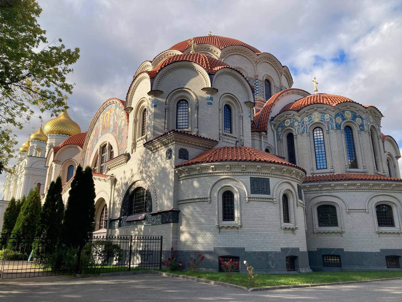 Дальше маршрут пролегает через несколько святынь, в том числе мимо очаровательной кирпичной Казанской церкви. Её облик в неовизантийском стиле напоминает Софийский собор в Константинополе. А ещё на протяжении всей дороги вас будут радовать ухоженные деревья и клумбы.