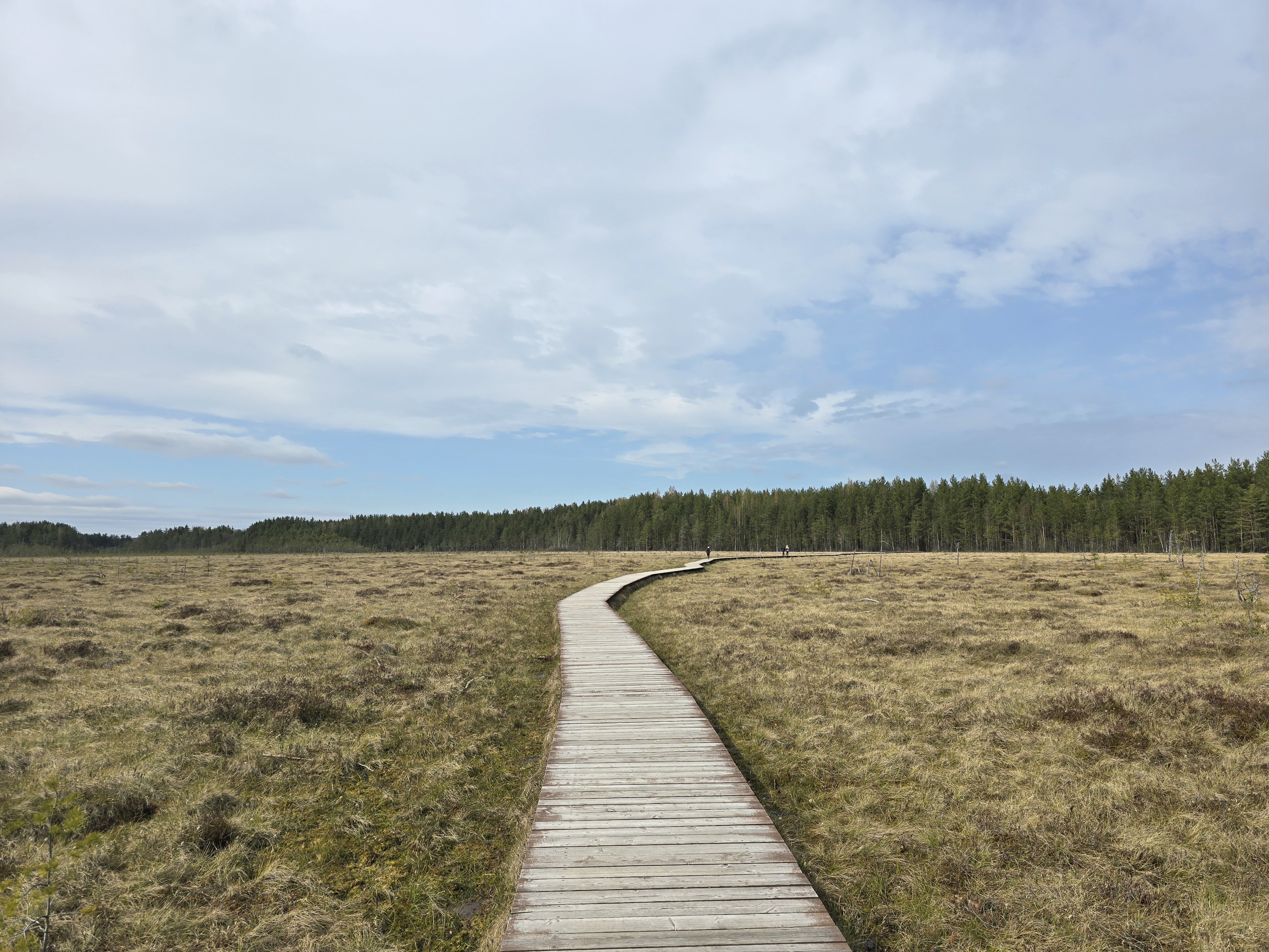Маршрут идёт от лесного озера через болота, сосновый лес и поля. В этой местности обитает 162 вида птиц, а также серые жабы и травяные лягушки. Осенью болото особенно притягательно своими волшебными красками, по утрам тропа утопает в тумане и слышны только протяжные крики птиц. Идеальное место, чтобы отдохнуть от городского шума.