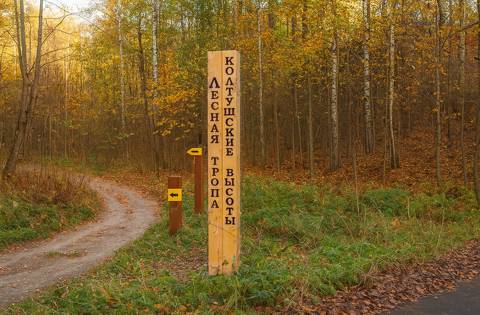 На территории памятника природы «Колтушские высоты» создано 3 велосипедных и 1 пешеходный маршрут, общая протяжённость — 18,5 км. Для осенней прогулки редакция выбирает «Лесную тропу», чтобы полюбоваться осенней растительностью.
