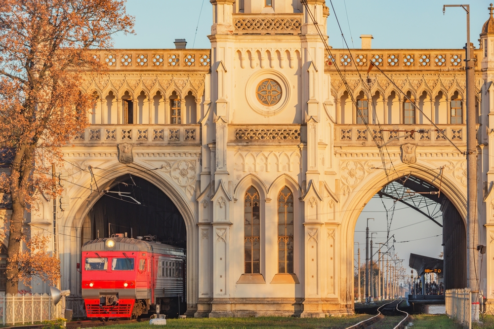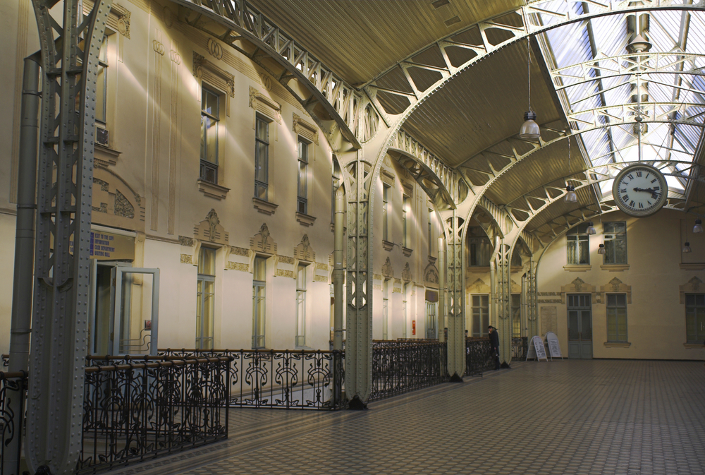 2. Большинство вокзалов города построены до революции. Самый красивый — Витебский, оформленный в стиле модерн. Снаружи здание украшает башня, внутри есть царский зал с панно, витражами, лепниной и мраморной лестницей.