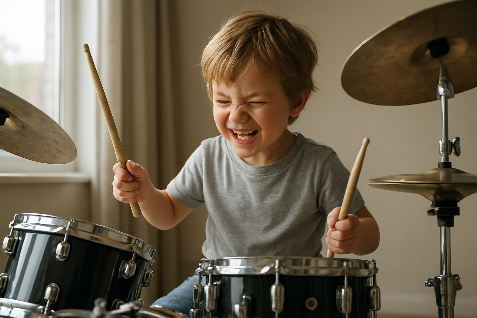 Осваивать ударные можно с 6–7 лет. Если опасаетесь покупать барабанную установку домой — не переживайте, в комплекте к каждой идут наушники.