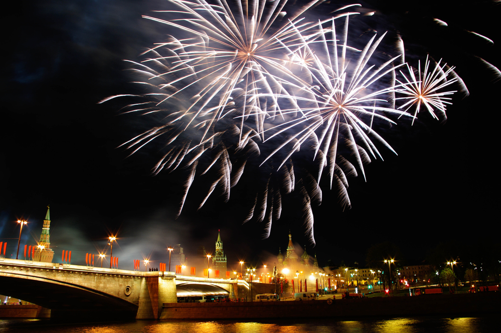 Как правило, салют запускают из нескольких точек города: на Поклонной горе, в Измайловском парке и Митино, на ВДНХ, Лужнецкой набережной, в парке Сокольники, на прудах в Южном Бутове и не только. Фейерверк длится 10 минут.