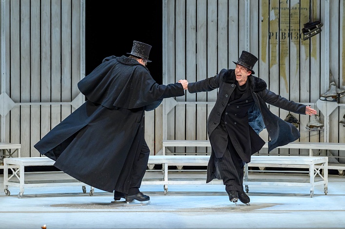 В Петербурге не пропустите «Женитьбу» в Александринском театре. Это необычная интерпретация комедии Гоголя, где часть действия разворачивается на сцене-катке.