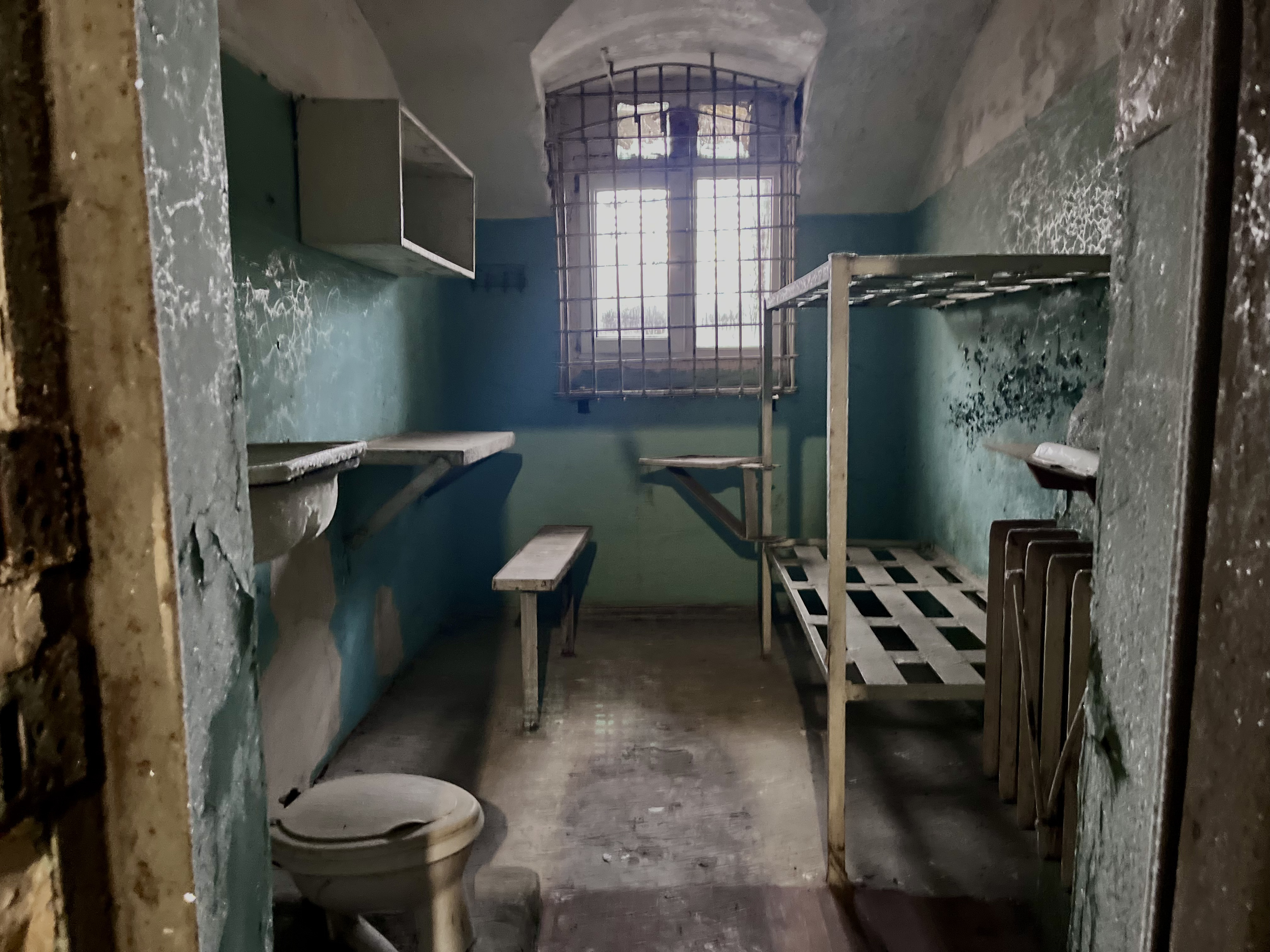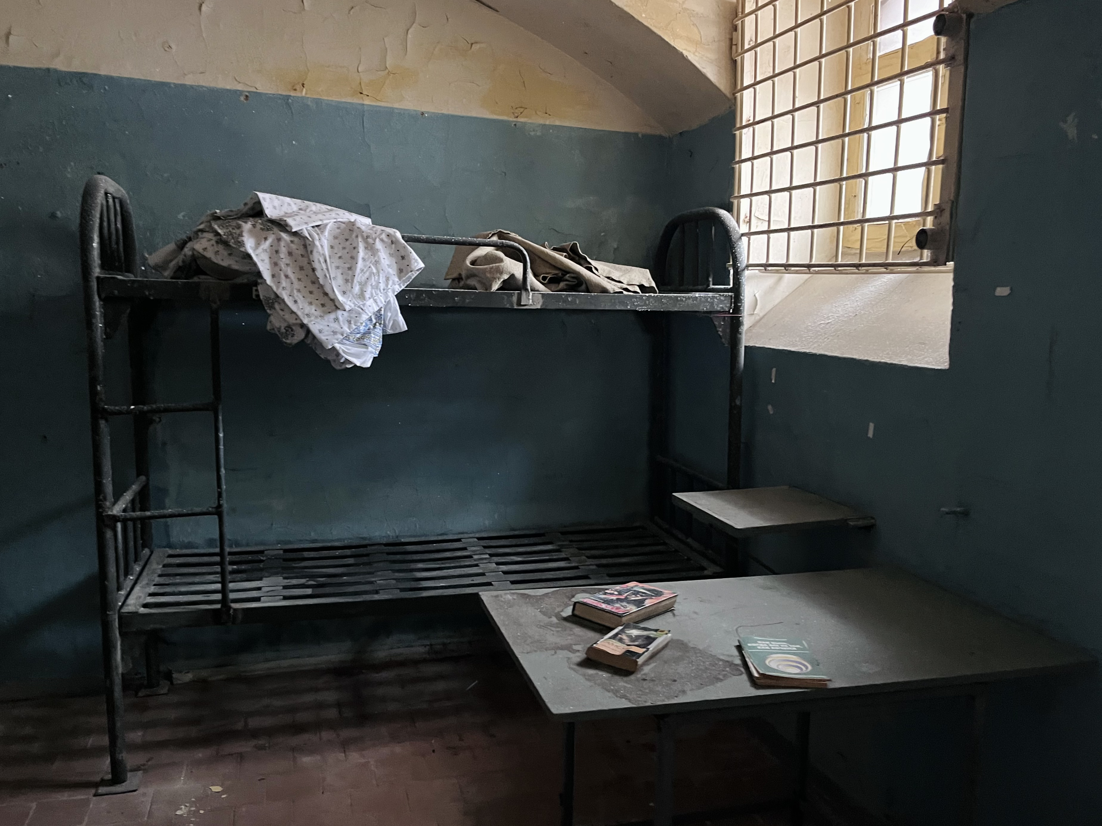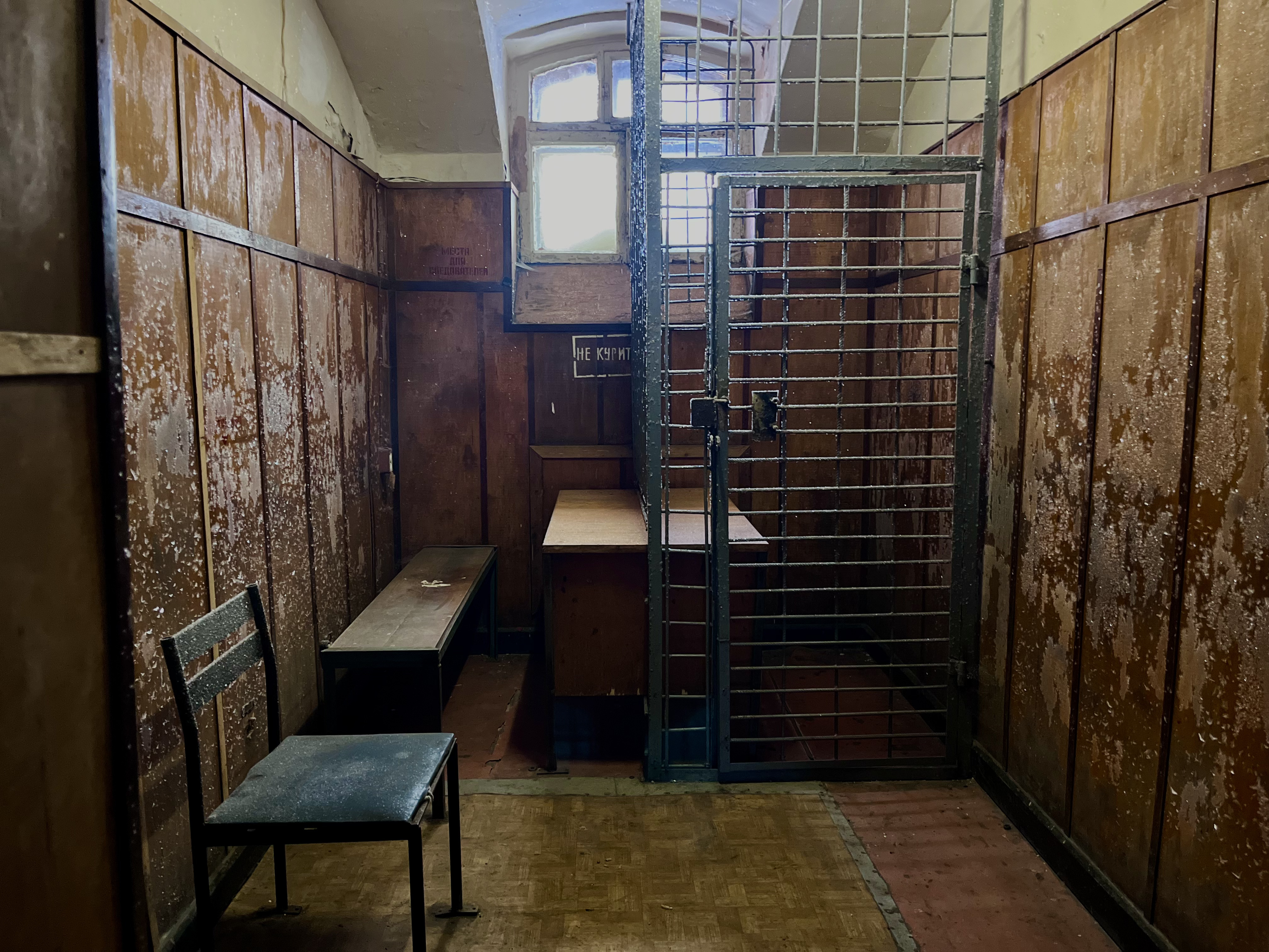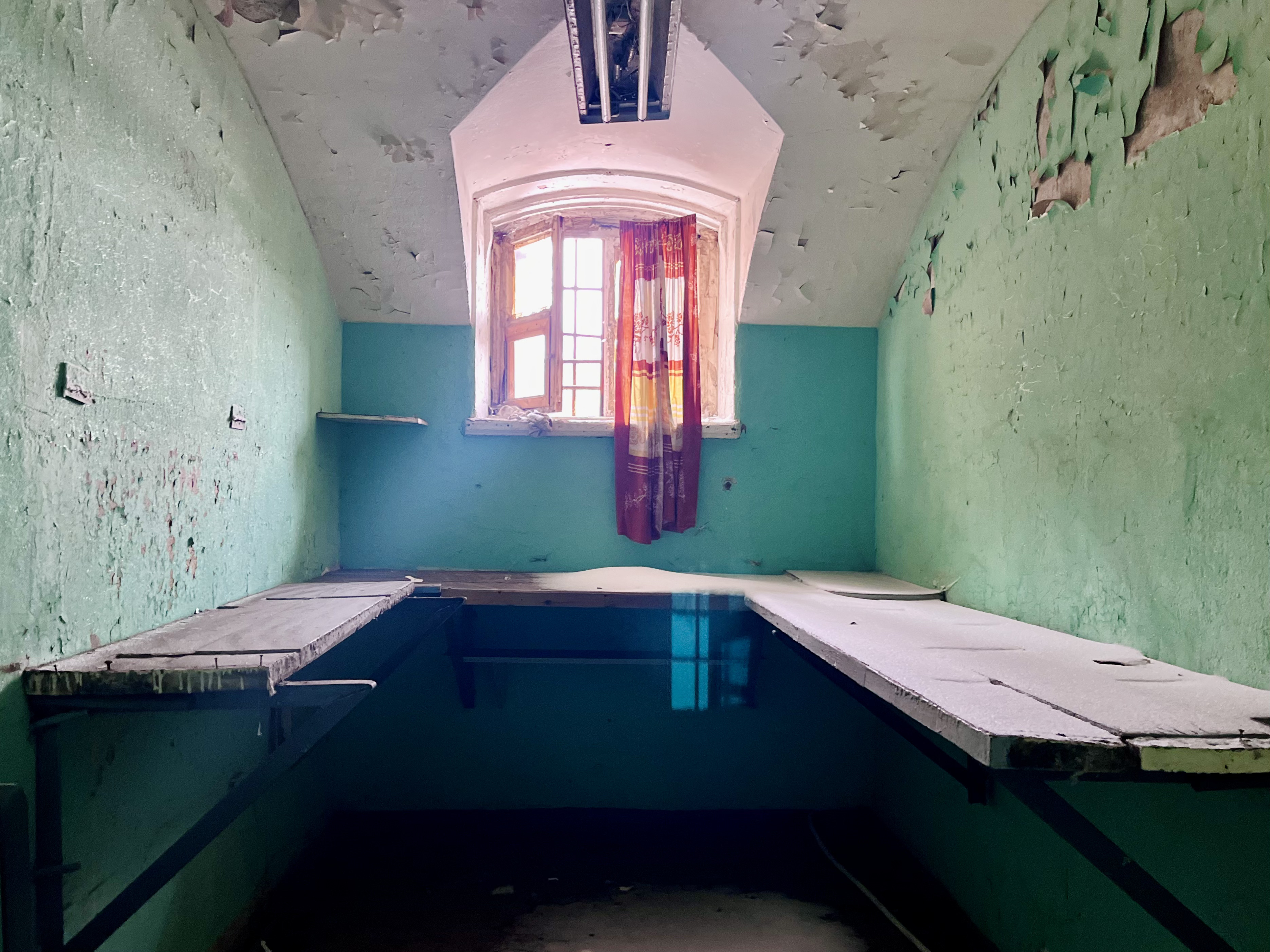 Свет в тесные камеры проникает через решётку, закрывающую окно. Сильное впечатление производят предметы, оставшиеся от последних заключённых: замёрзшие шторки, настенный календарь с изображением кошки за 2017 год, газеты и промёрзший цветок в горшке.