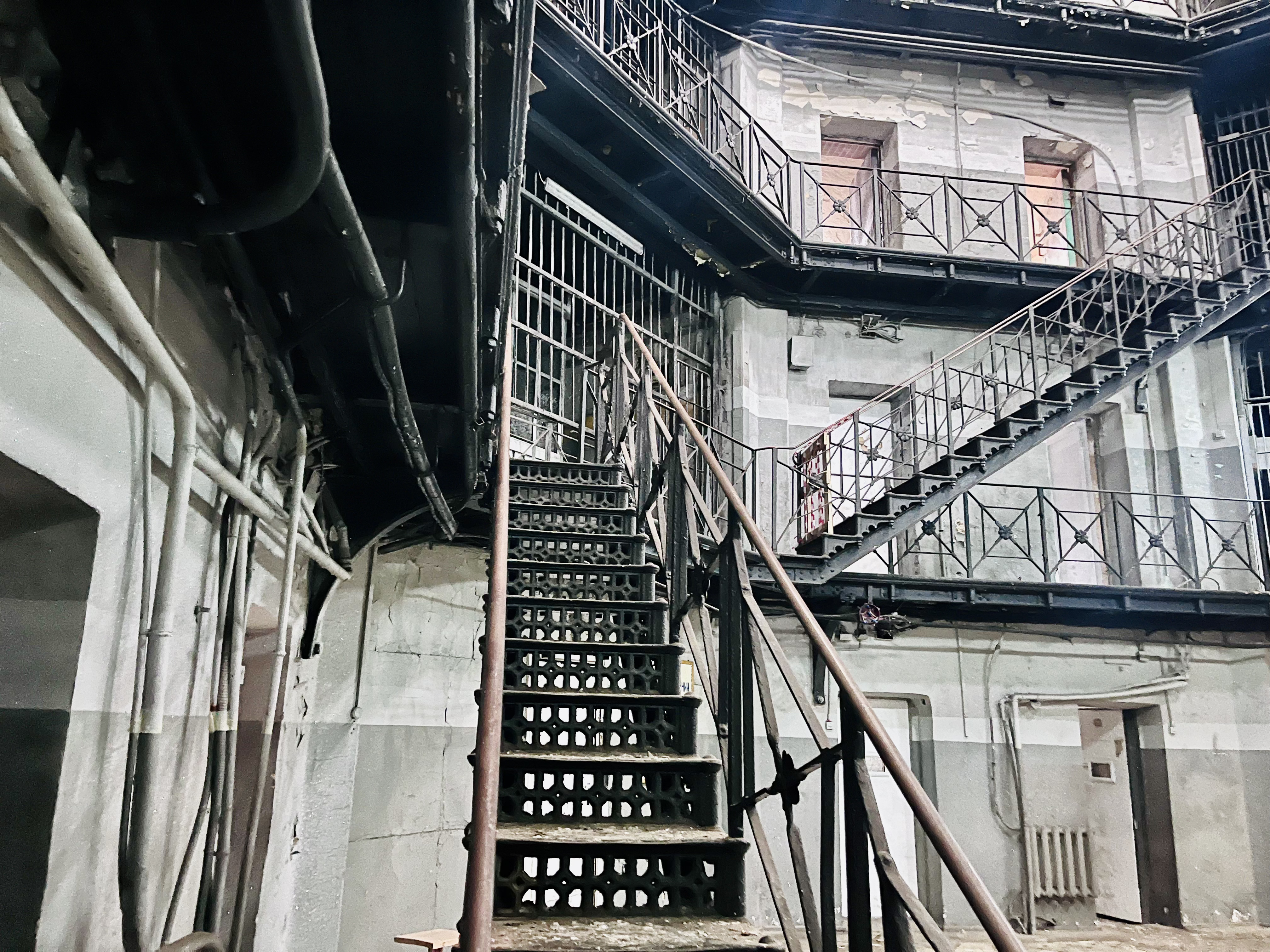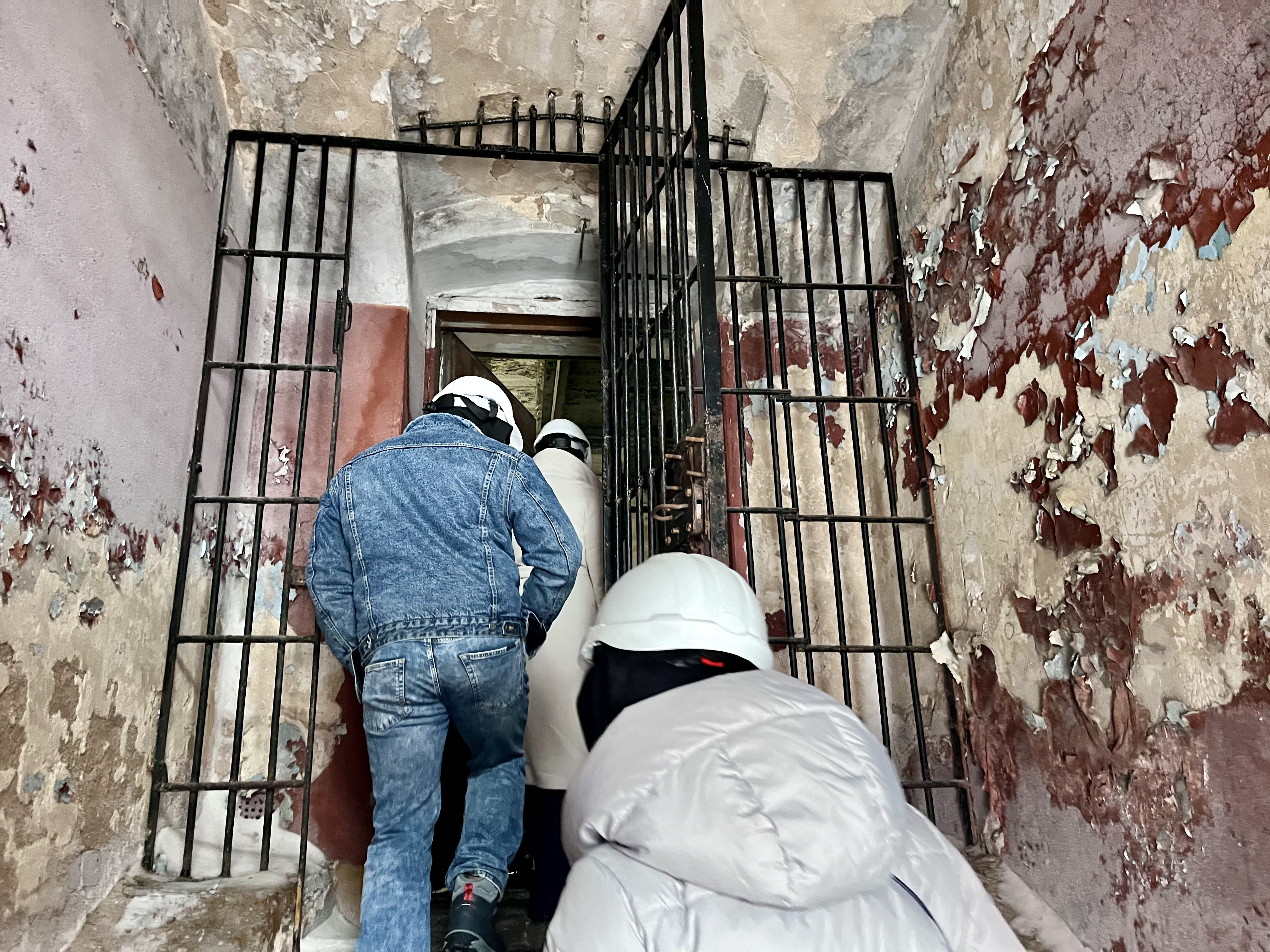 Пройдя через входные ворота в арестантскую обитель, участники экскурсии получают каски. Многие здания комплекса, построенного в 1892 году, уже аварийны: с 2017-го они не отапливаются и не ремонтируются — предосторожность не помешает.