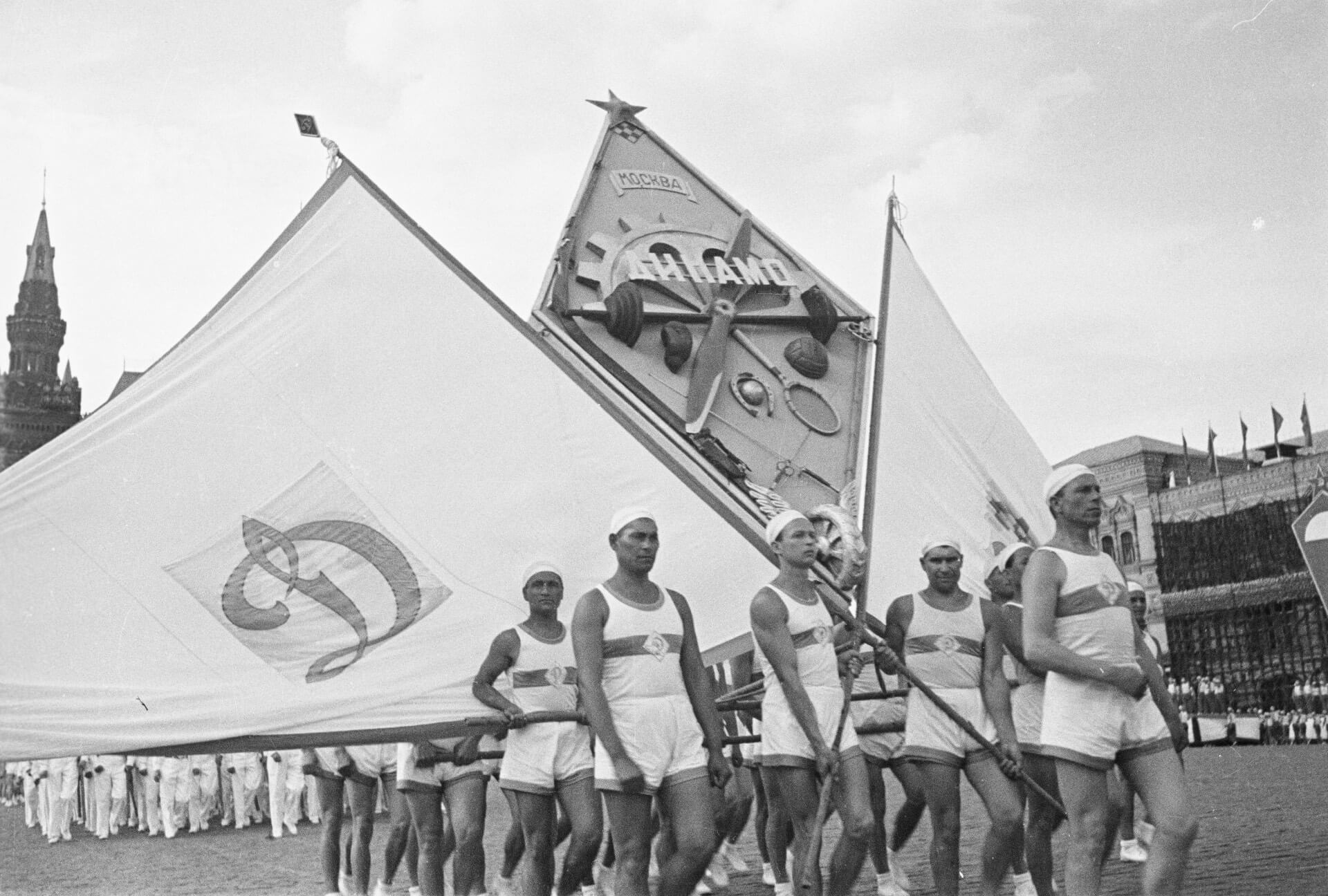 Фото: Александр Родченко. Спортивный парад на Красной площади. Спортсмены «Динамо» с флагами и эмблемой общества / Центр «Зотов»