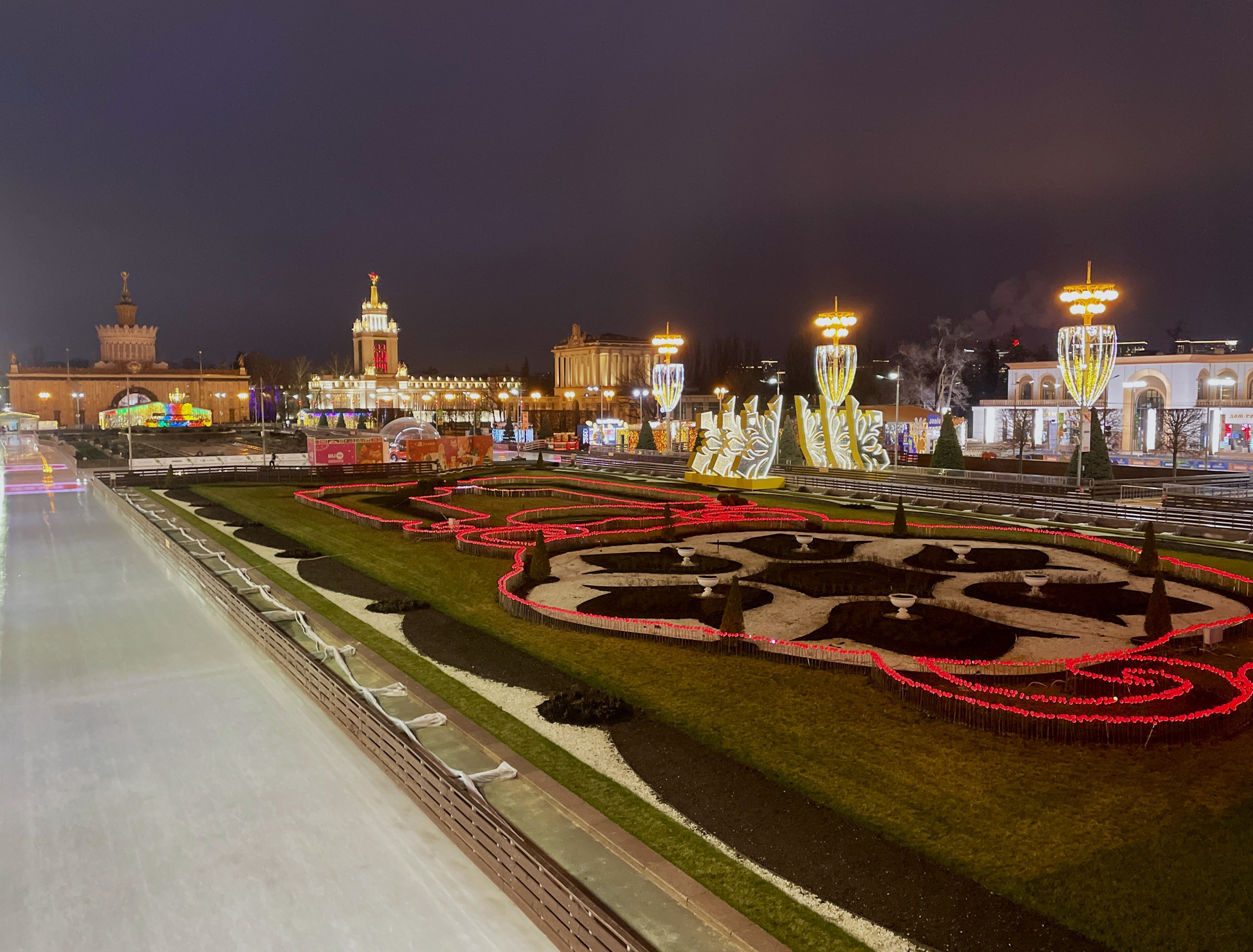 Площадь катка у ВДНХ превышает 20 000 кв. м. — одновременно здесь могут кататься пять тысяч человек! Местный лёд обожают поколения москвичей, в том числе за красивое окружение: дорожки проходят вдоль главной аллеи, вокруг фонтанов «Дружба народов» и «Каменный цветок».