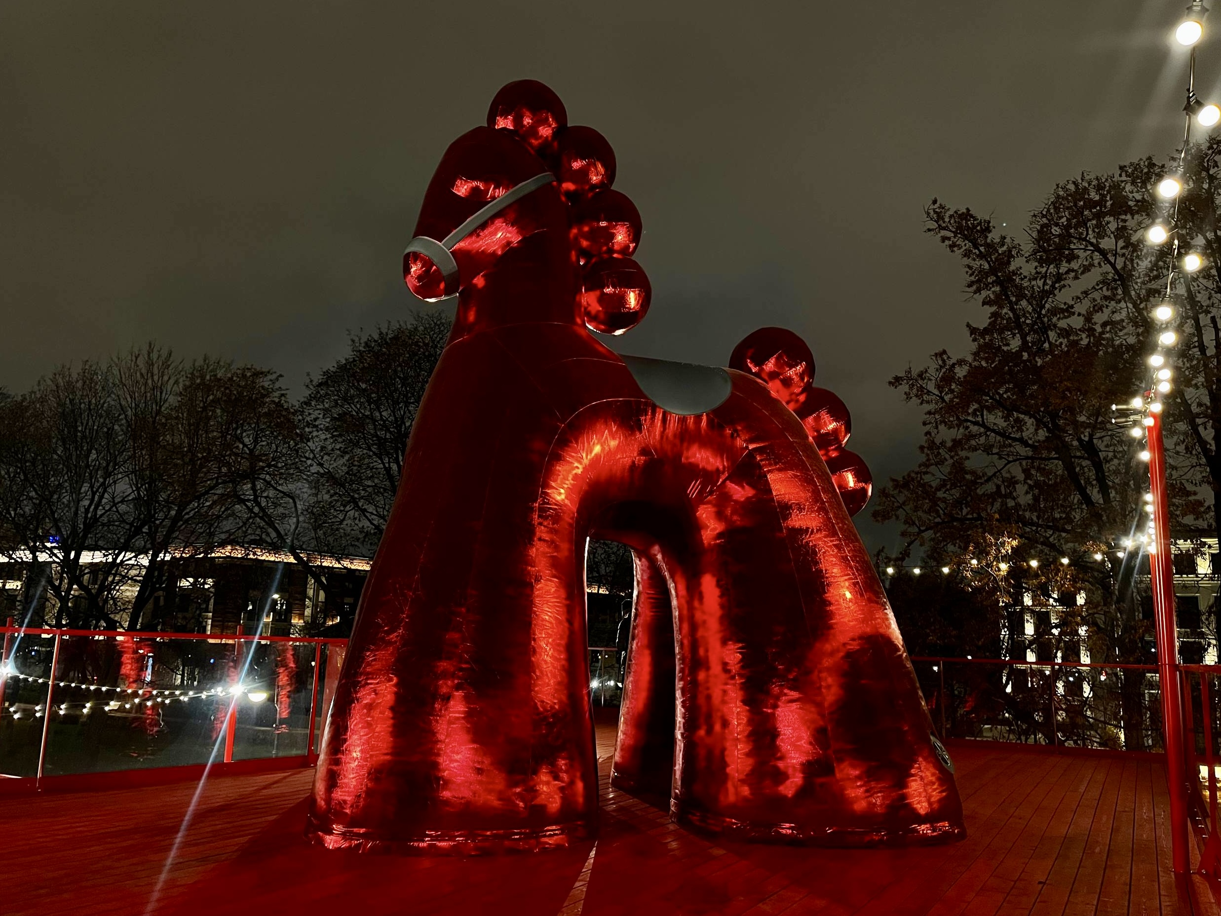 Скажем честно, мы бы сами хотели оказаться на Новый год в Москве, чтобы увидеть всю эту красоту: километры гирлянд, тысячи нарядных ёлок и невероятные арт-объекты — от мандариновых весов до гигантского красного коня.