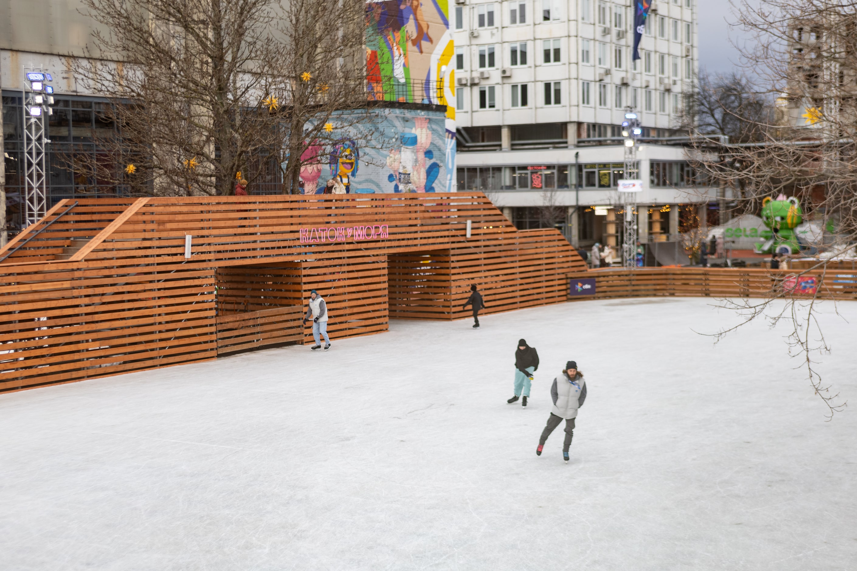 Традиционную зимнюю забаву дополняет развлекательная программа — на катке выступают артисты балета, здесь проводят диджей-сеты и тематические вечеринки, а также мастер-классы. Есть тёплые раздевалки, пункты проката и заточки коньков.