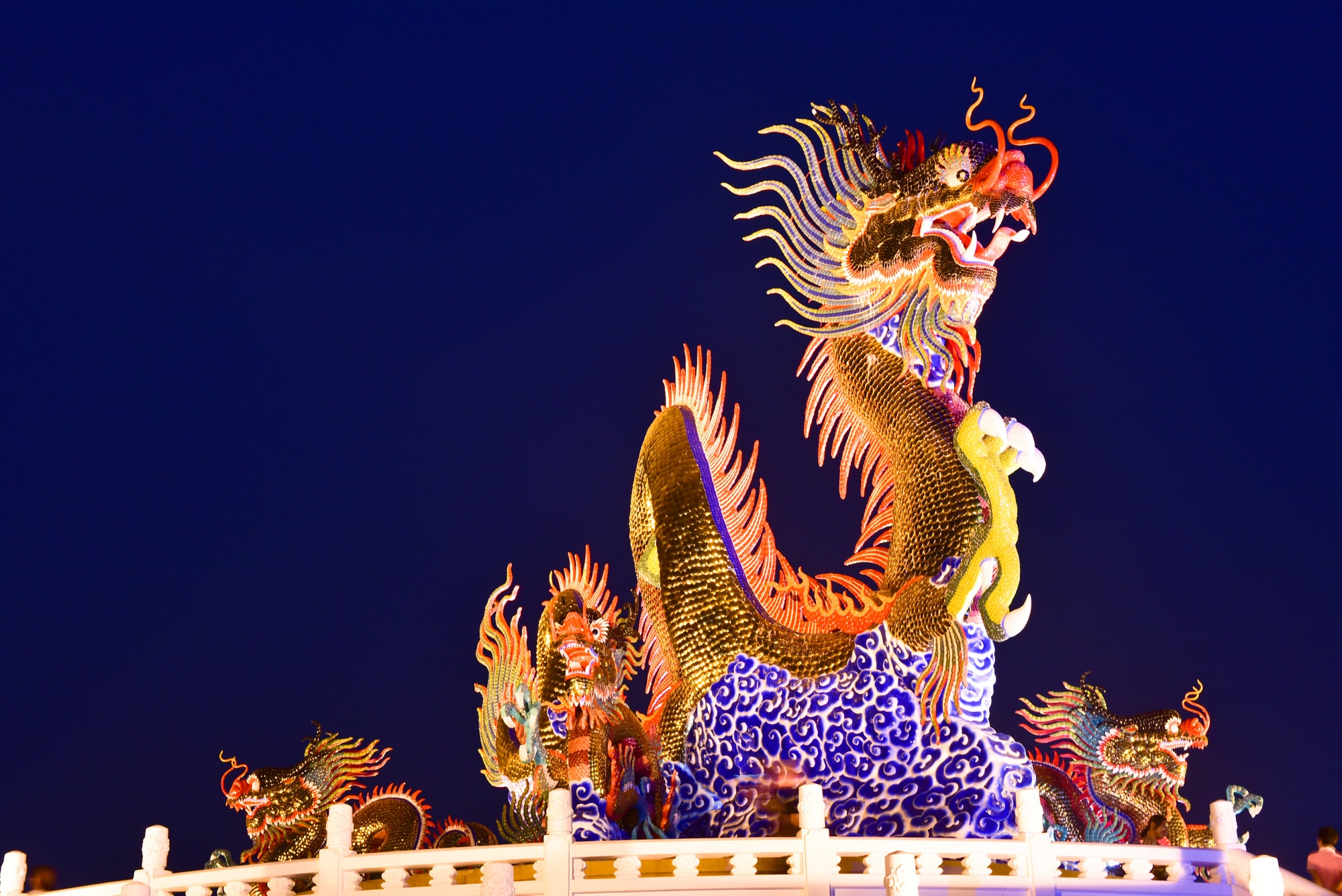 Самый масштабный — танец дракона, для которого нужны до 50 человек. Они держат фигуру огромного змея на шестах и двигаются так, будто существо извивается в полёте.
