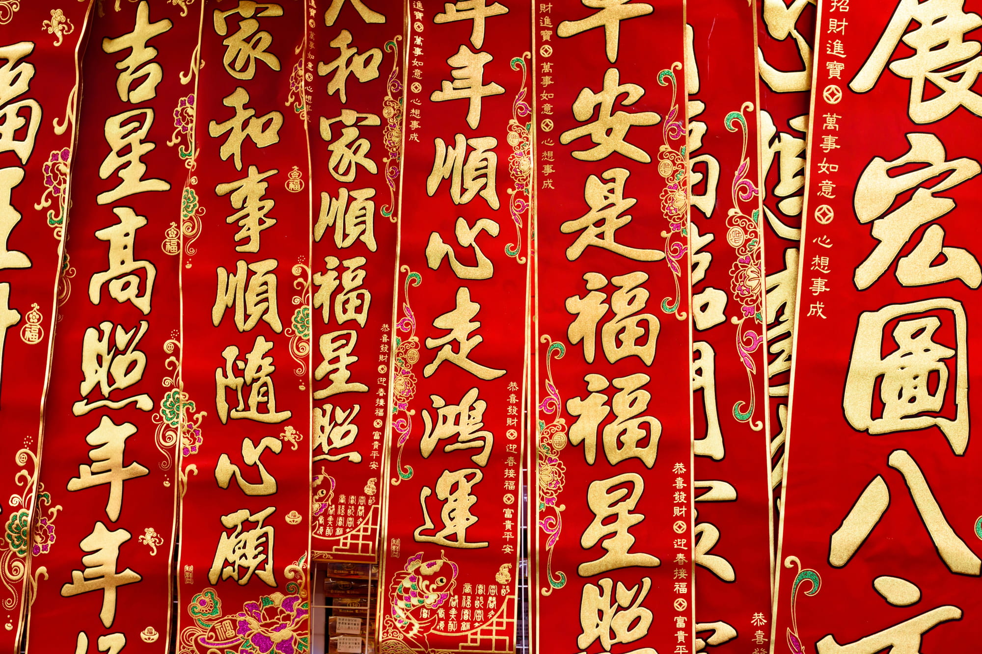 К празднику китайцы до сих пор украшают дома красным декором — бумажными фонариками, узорами из бумаги (цзяньчжи), лубочными картинами (няньхуа), каллиграфическими табличками с пожеланиями и иероглифами «Фу», который буквально означает «счастье, благополучие». Изображение специально переворачивают, чтобы удача «упала» в дом.