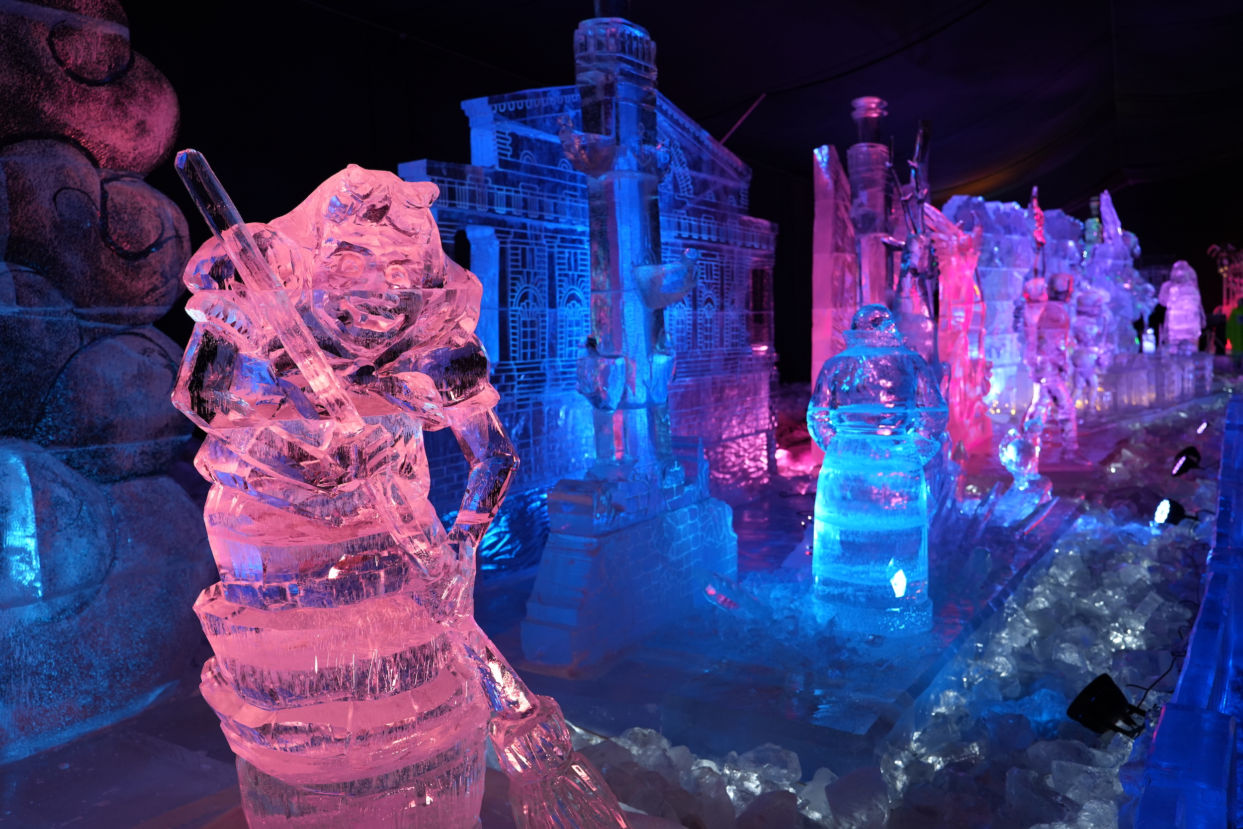 Для создания скульптур в Петербург доставят 200 тонн речного льда из Мурманской области и Пермского края. До официального открытия резчики буду работать в специальном «морозном» павильоне, а затем все скульптуры разместят в холодном шатре. Независимо от погодных условий, внутри будут поддерживать низкую температуру, чтобы не нарушить первозданный вид объектов и сохранить их до окончания фестиваля. Сопровождать экспозицию будет художественная подсветка, под которой лёд заиграет новыми красками.