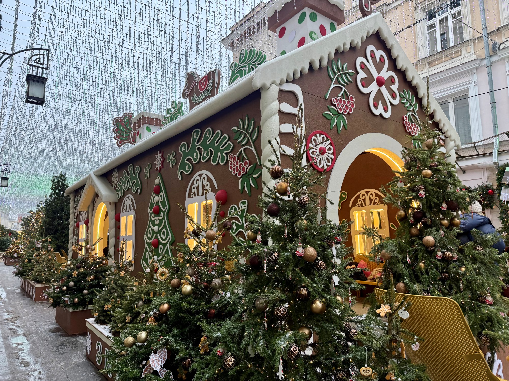 Никольская улица будто застыла в вечном празднике: круглый год здесь сияют гирлянды, а снимки получаются просто волшебными.