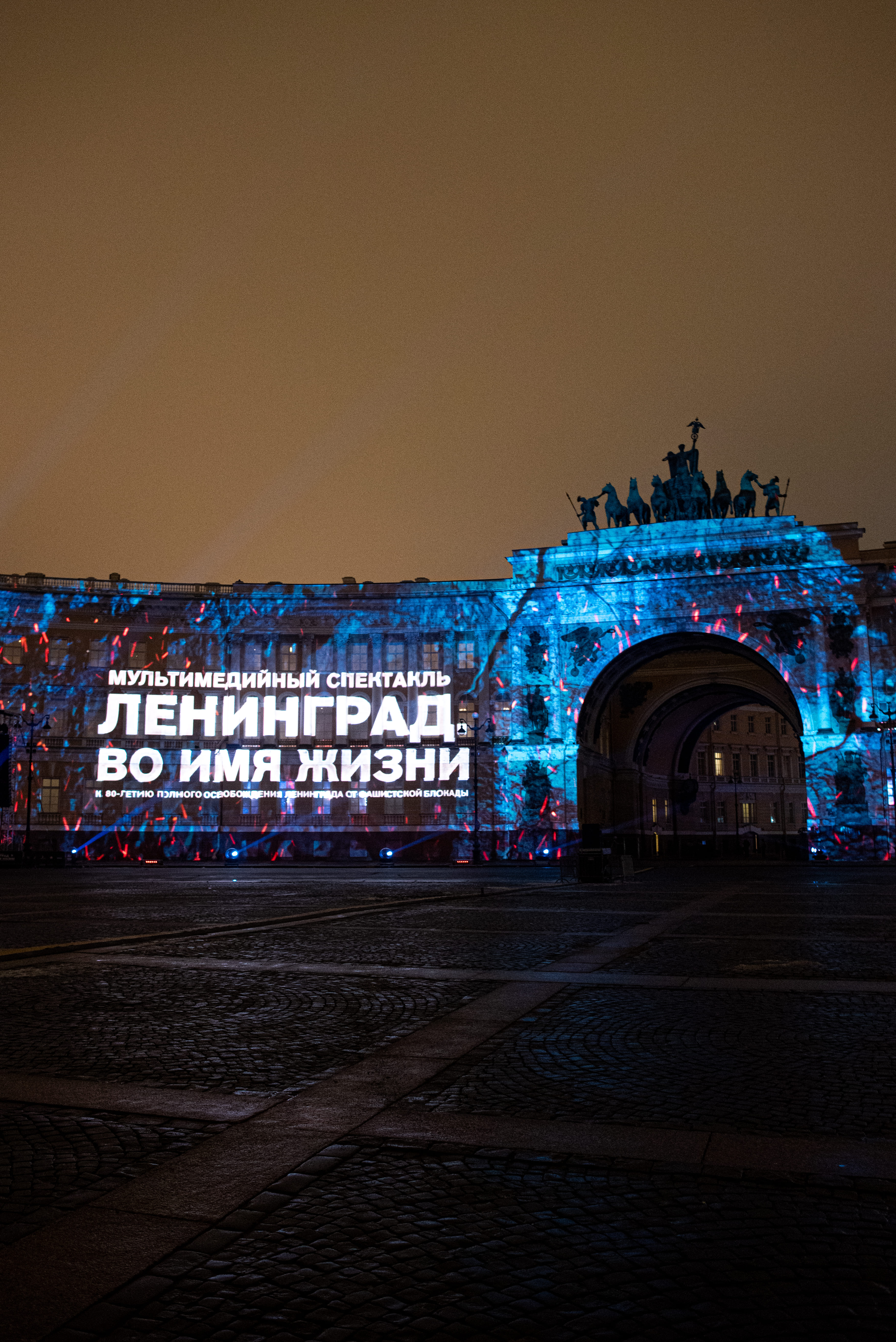 С помощью 3D мэппинга авторы спектакля рассказали о том, как ленинградцы пережили страшные 872 дня. Архивные фото сменялись воссозданными изображениями достопримечательностей, погружая зрителей в атмосферу прошлого. Визуальные образы были дополнены цитатами из документов и блокадных дневников.