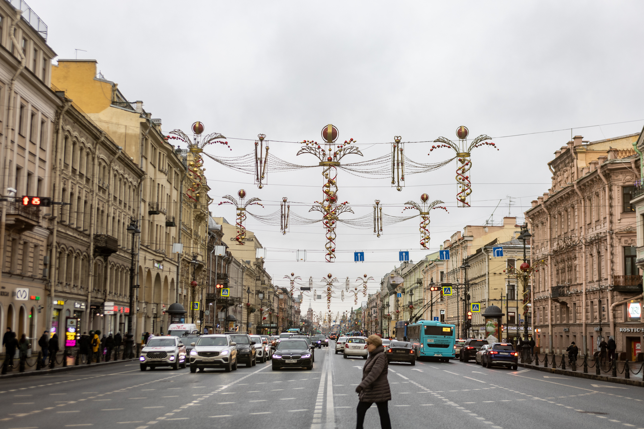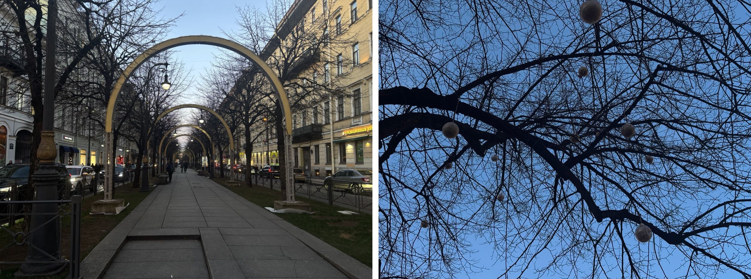 Над дорожным полотном разместили традиционные растяжки с коронами, на фонарных столбах — похожие на крылья детали украшений в имперском стиле. В тёмное время суток их пока что не зажигают.