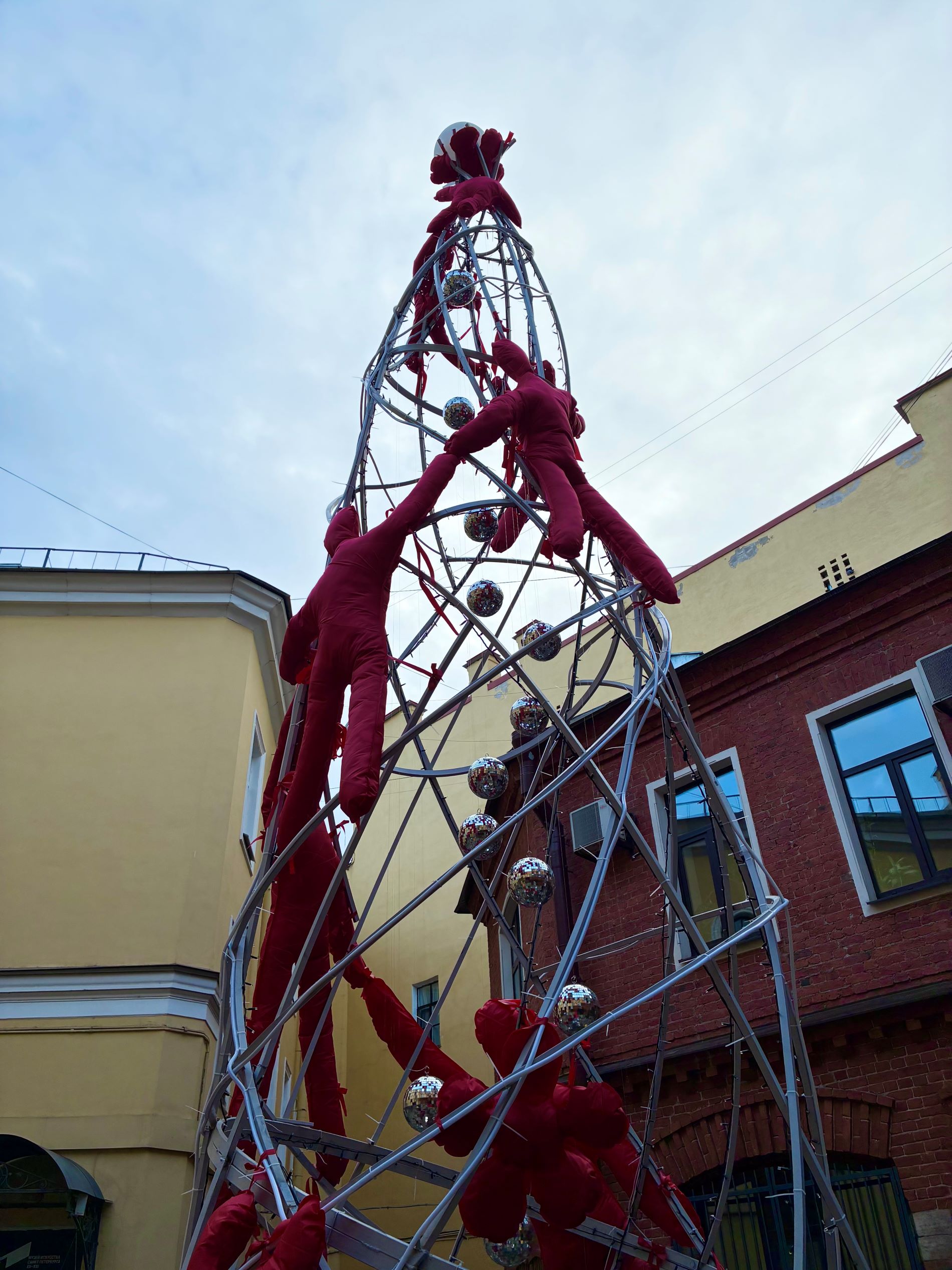Во дворе музея установили необычную «ёлку», сделанную художниками Сергеем Бородкиным и Натальей Галкиной. Праздничное «дерево» представляет собой металлический каркас, увитый гирляндой, по которому на вершину хороводом взбираются красные человечки.