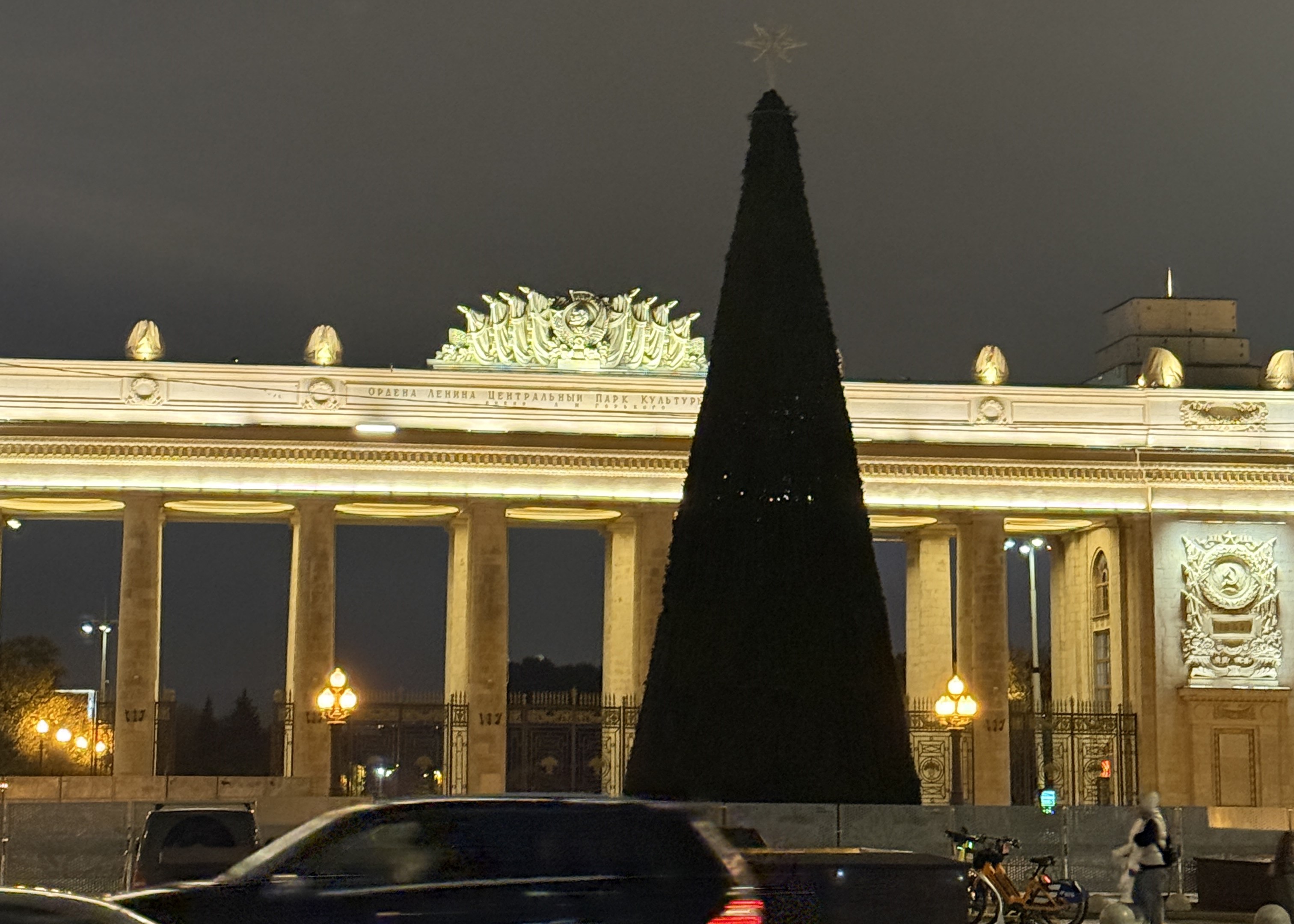 Ёлку поставили у главного входа в парк Горького, праздничные украшения появились также на фасаде ЦУМа. «Горбилет» показывает, как выглядит подготовка к Новому году в Москве в середине осени.