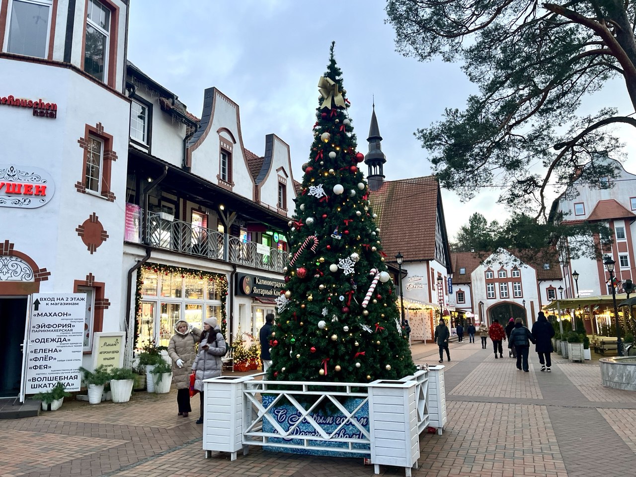 Ещё одной излюбленной локацией для зимних прогулок традиционно становится район Амалиенау с немецкими домами, заснеженными дорожками и уютными сувенирными лавками. К праздникам его тоже нарядно декорируют: на ели вешают игрушки, а исторические особняки украшают гирляндами.