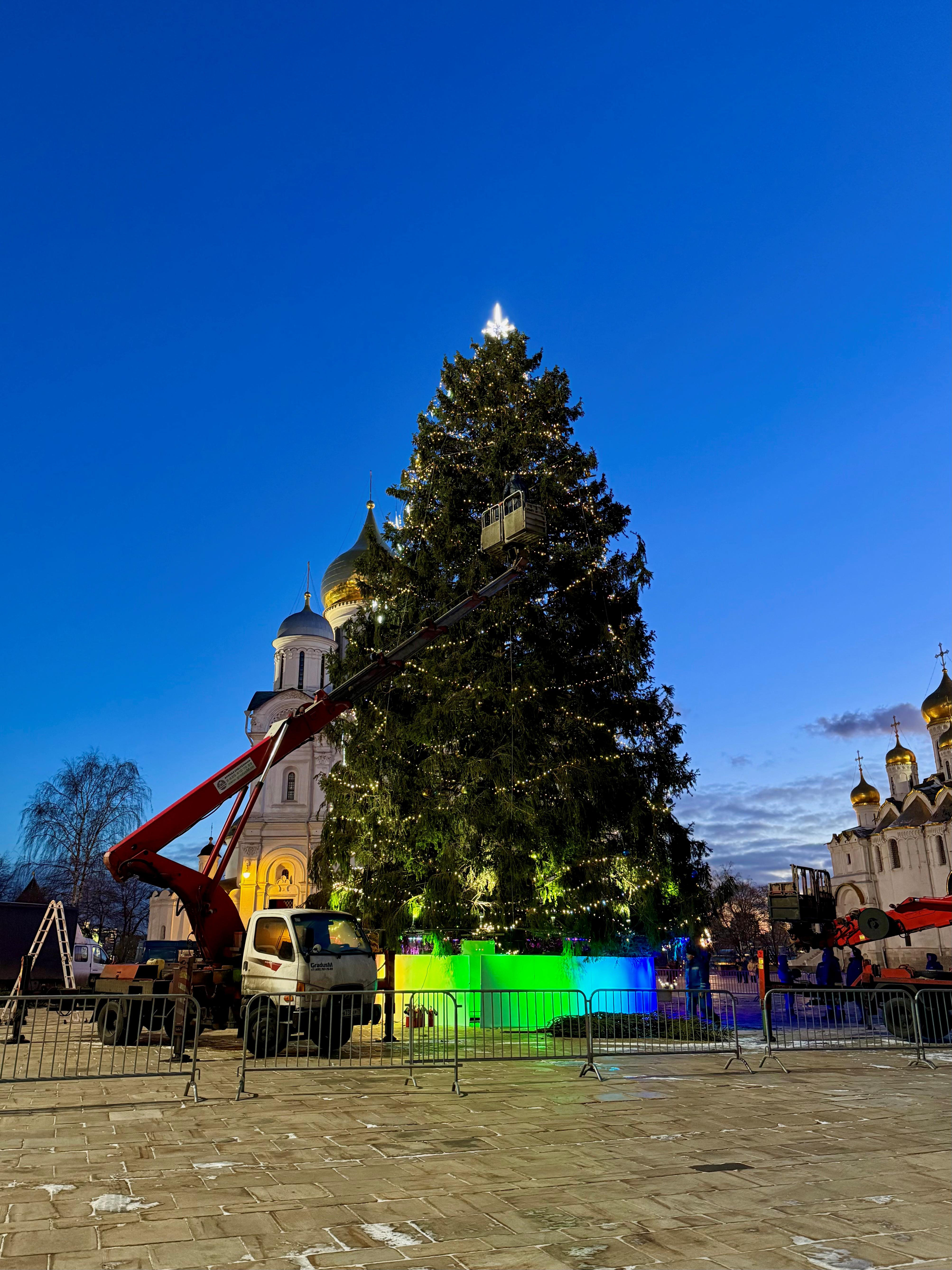Сообщается, что украшение ёлки планируют завершить до начала новогодних утренников в Кремлёвском Дворце, то есть до 25 декабря. Тогда же состоится церемония зажжения огней. А радовать посетителей своей красотой она будет до 20 января.