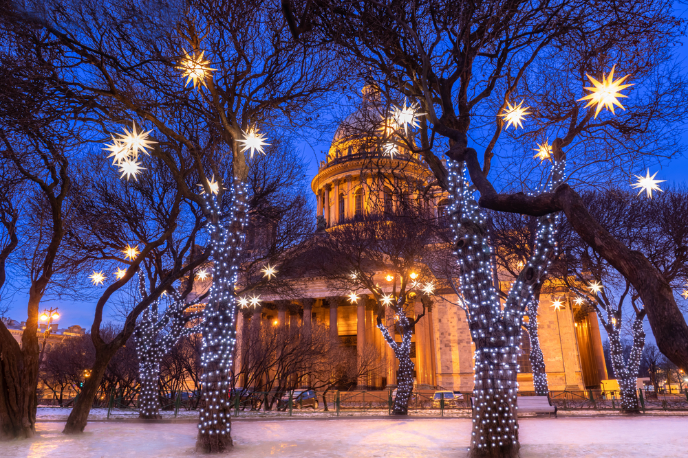 Путешествие по заснеженному Петербургу, который в канун главной ночи года переливается огоньками гирлянд и ёлочных игрушек. За вечер вы увидите самые нарядные места города: Невский проспект, Дворцовую и Исаакиевскую площади, Семимостье, Смольный и Николо-Богоявленский соборы, посетите рождественский вертеп и сделаете красивые фотографии.