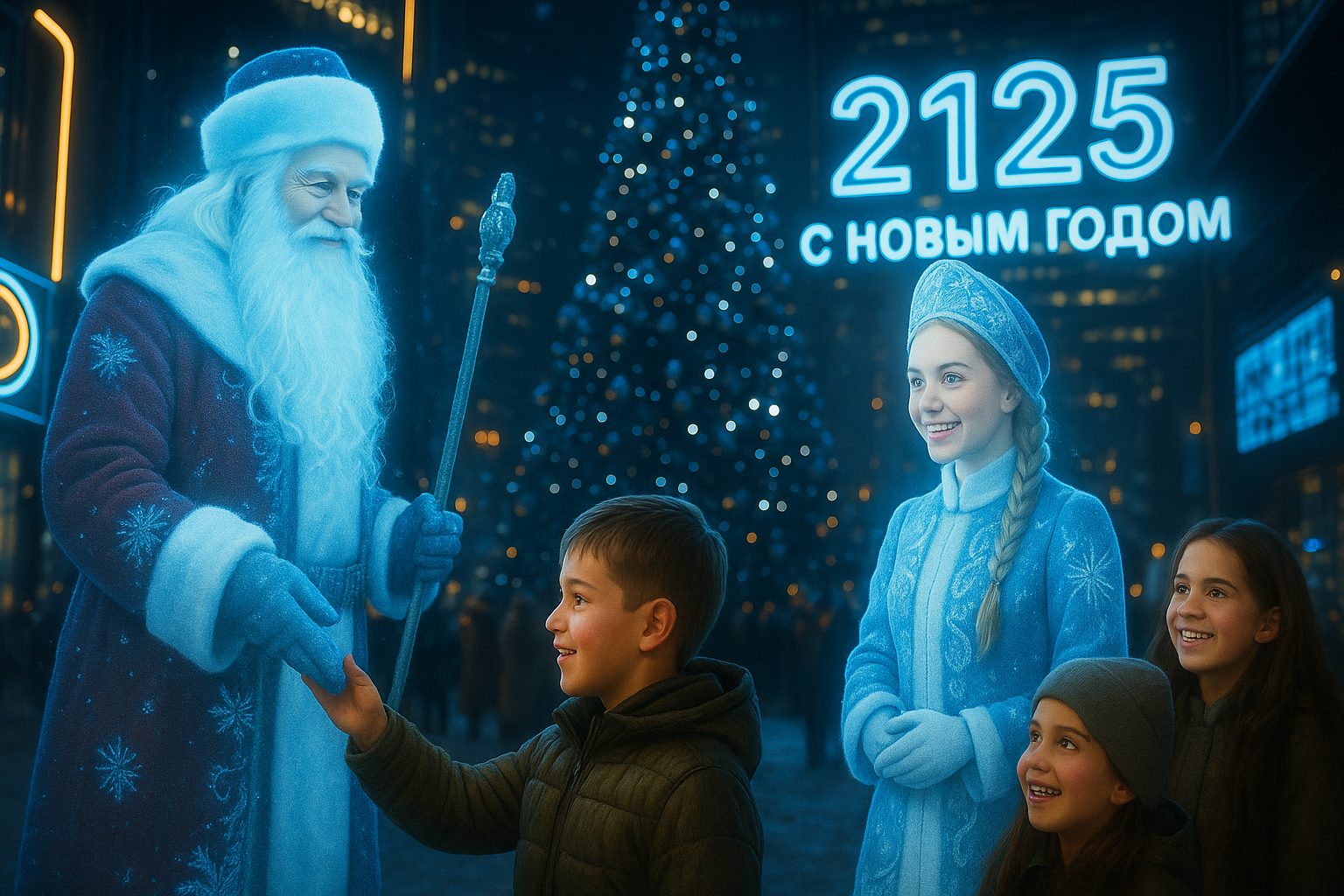 Скорее всего, в 2125 году, с развитием нейросетей и искусственного интеллекта Дед Мороз может стать настоящим (только тссс, не рассказывайте детям). Вернее, он обретёт более реальную форму. К примеру, сможет поддерживать связь с ребятами и взрослыми с помощью дополненной реальности и голограмм. Или станет тем самым супергероем, которого нам так не хватает перед праздниками, и будет знать, каких подарков ждут дети, заранее анализируя их желания с помощью нейросетей. А ещё вместе со своей голографической внучкой Снегурочкой он сможет дарить подарки, сделанные с помощью усовершенствованных 3D-принтеров.