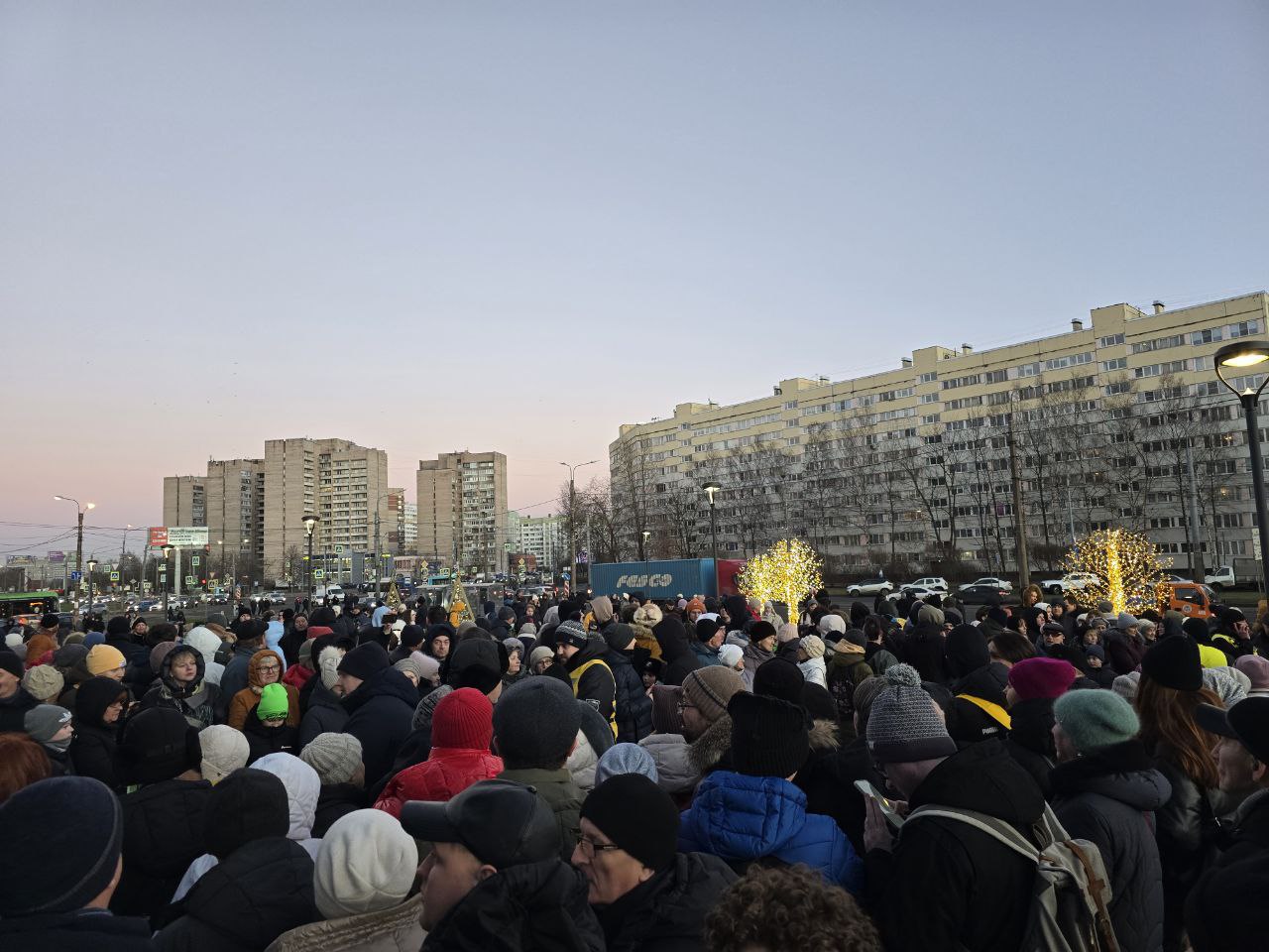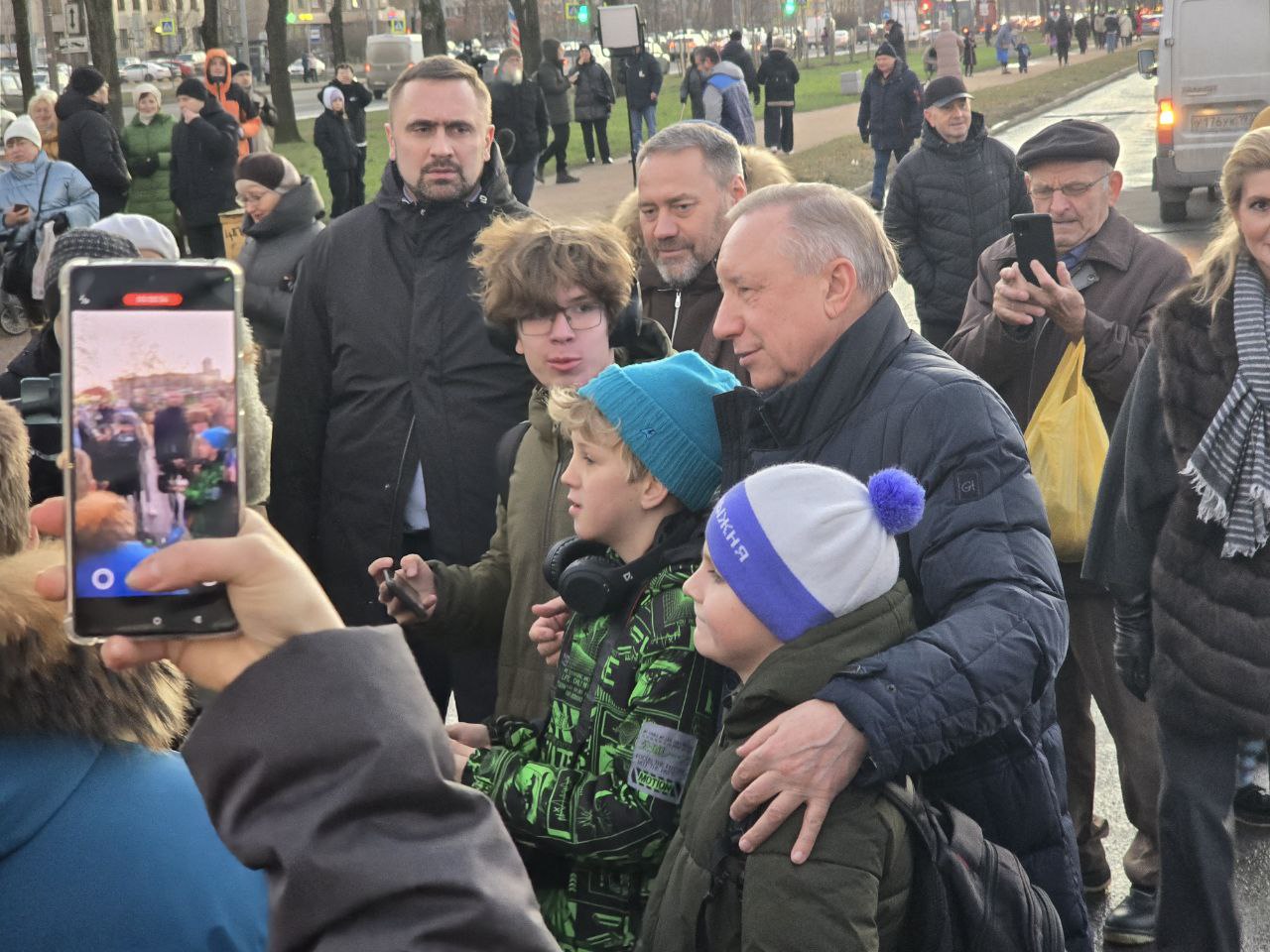 Ещё больше людей пришло к «Юго-Западной»: в 16:00 у дверей стояли полторы сотни человек. Вскоре к ним присоединился губернатор Петербурга Александр Беглов и спикер ЗАКСа Александр Бельский.