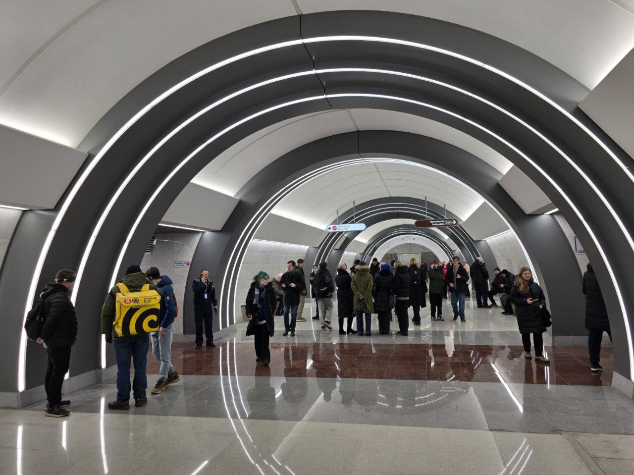 «Путиловская» — это пересадочная станция с «коричневой» на «красную» линию метро. В месте, где раньше стоял бюст Ленина на «Кировском заводе», теперь находится переход на шестую ветку. Именно там многие пассажиры решили подождать открытия новой станции, чтобы не мёрзнуть на улице.