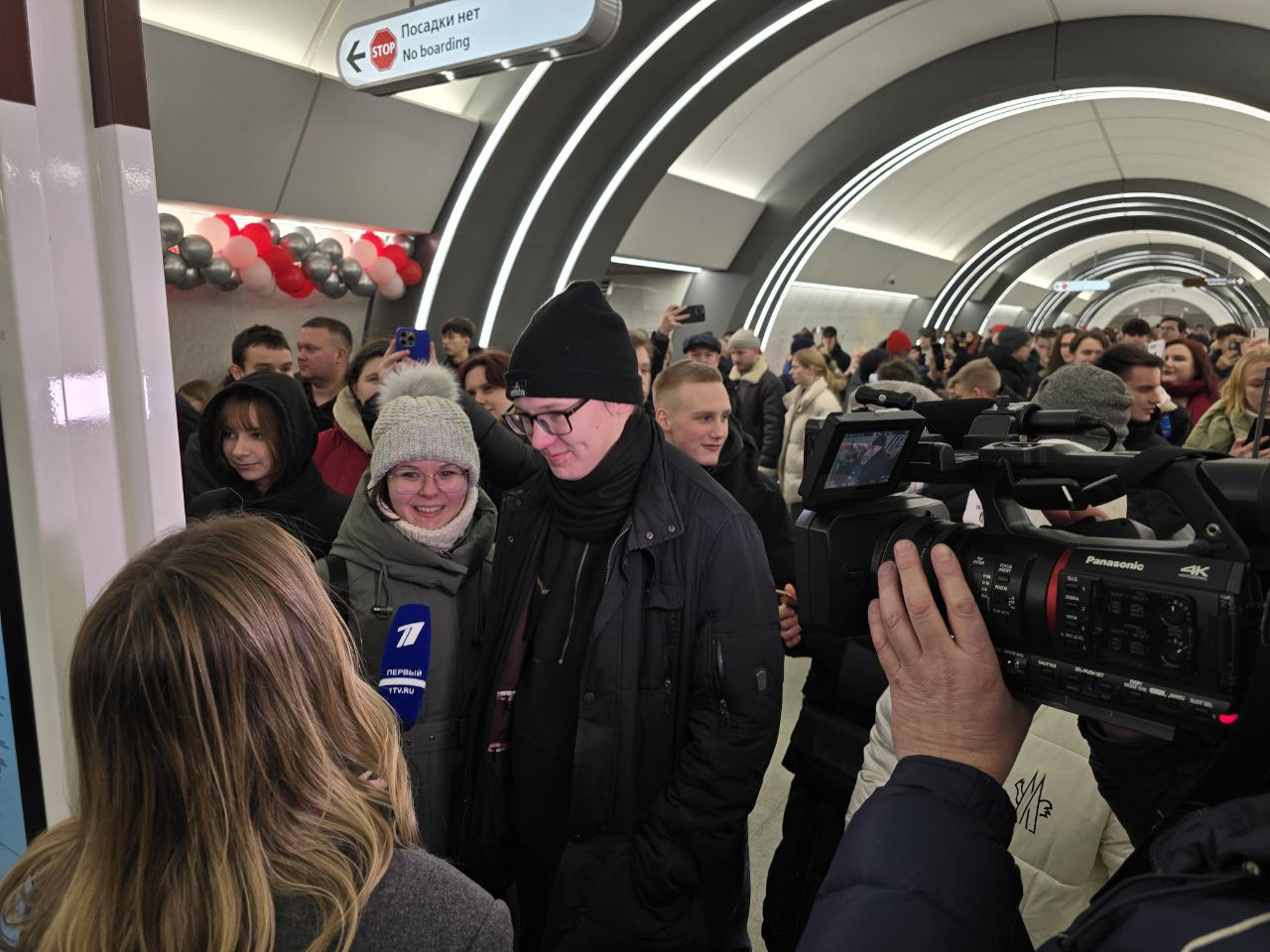 Большинство пассажиров сегодня специально приехали на «Юго-Западную» и «Путиловскую», чтобы посмотреть на запуск новой ветки метро. Но были и те, кто заскочил по случаю, например, покупатели из соседнего «Окея» и курьер «Яндекс.Еды». Люди обменивались поздравлениями, кто-то кричал «Спасибо за метро!».