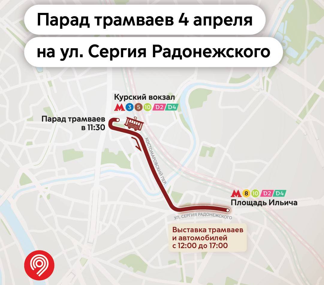 Парад трамваев начнётся 4 апреля в 11:30. Исторические вагоны проедут от Курского вокзала до улицы Сергия Радонежского. Это новый маршрут: в 2025-м колонна выезжала из депо им. Апакова на Шаболовке и шла до Даниловской мануфактуры, а затем в обратном направлении.
