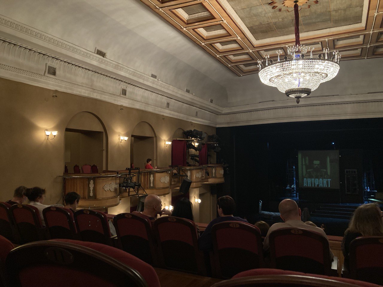 Откуда видно хуже. Места за креслами в БДТ не такие удобные, как в Александринском театре. Первые ряды ещё ничего, а дальше есть риск прищуриваться и постоянно выглядывать за голову соседа спереди.
