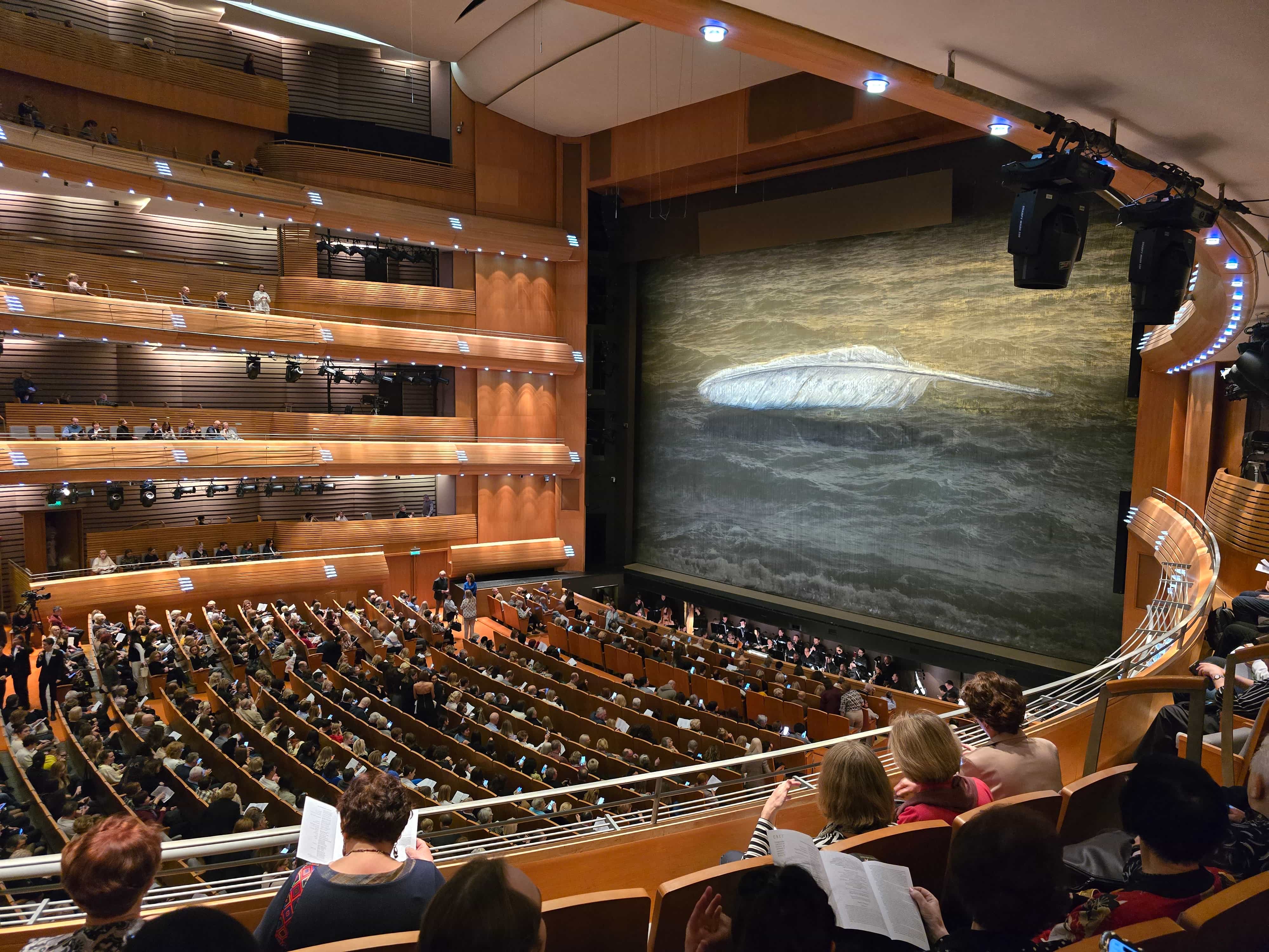 На новой сцене Мариинки спектакль хорошо видно и слышно практически из любой точки зала. Ещё одно преимущество в том, что места не всегда заполняются полностью, и в антракте некоторым зрителям везёт пересесть, например, с балкона в бенуар. Лучшие места находятся в партере, бенуаре и бельэтаже.