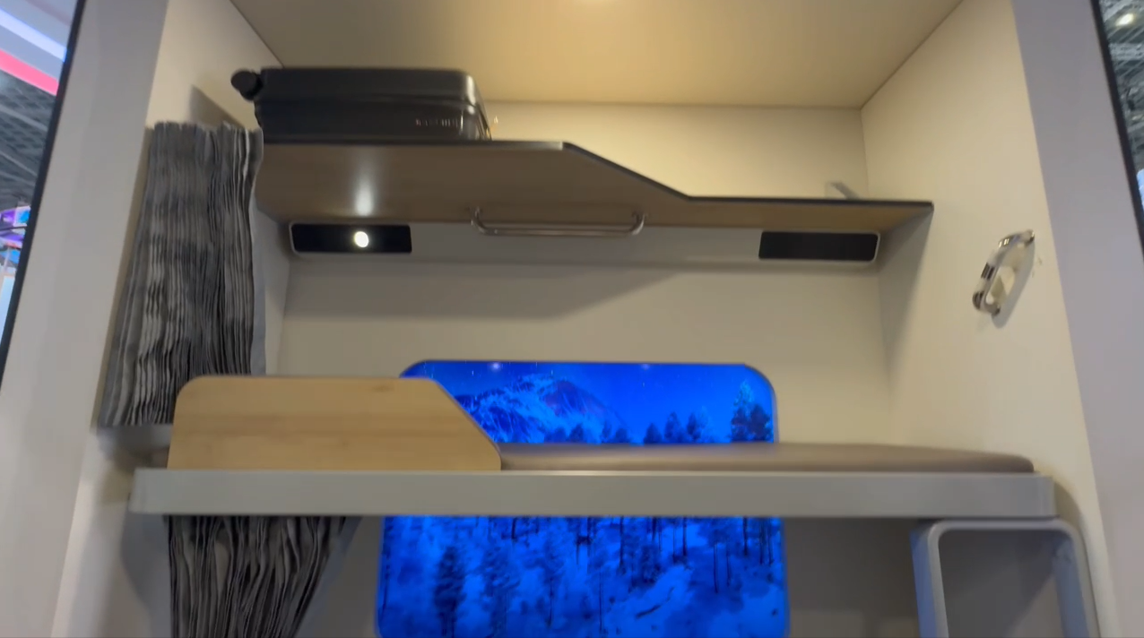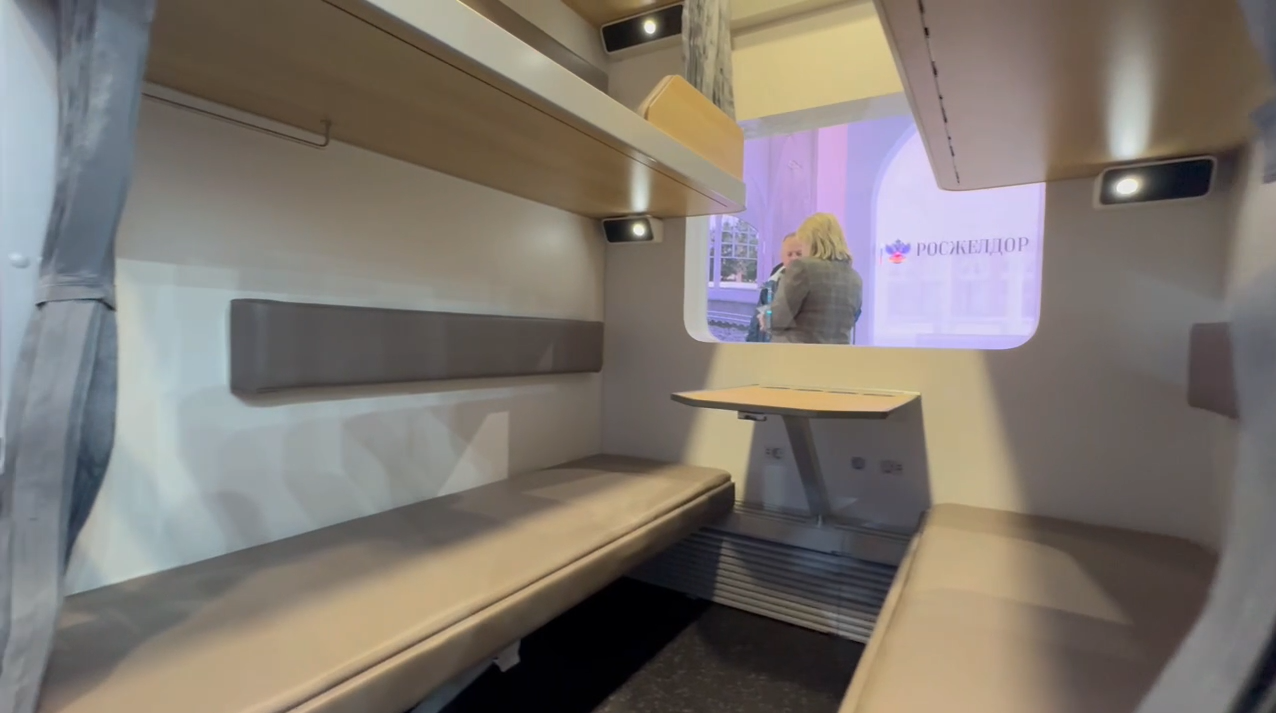 Каждое спальное место оборудовано шторкой, столиком, персональным светильником, розетками (220 В и USB), а также индивидуальным воздуховодом. В вагоне предусмотрены два санузла и отдельная душевая кабина.