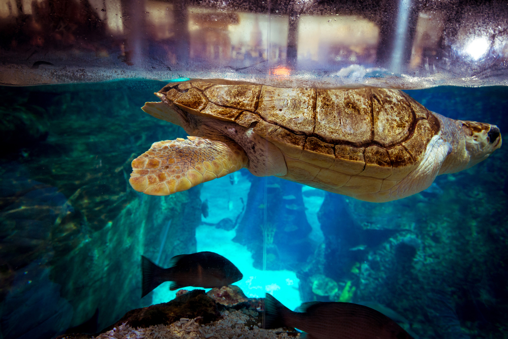 В следующем зале — зона для обитателей морей и океанов. Тут и находится тот самый длинный тоннель, где вода со всех сторон. Фото здесь тоже получатся незабываемыми! За акриловым стеклом тоннеля свой мир: подводные растения, рифы и скалы, остатки затонувшего корабля… Там же плавают разные виды акул, черепахи и их спутники — жёлтые лоцманы, а ещё мурены. Особую атмосферу создаёт приглушённый свет и шум морских волн.